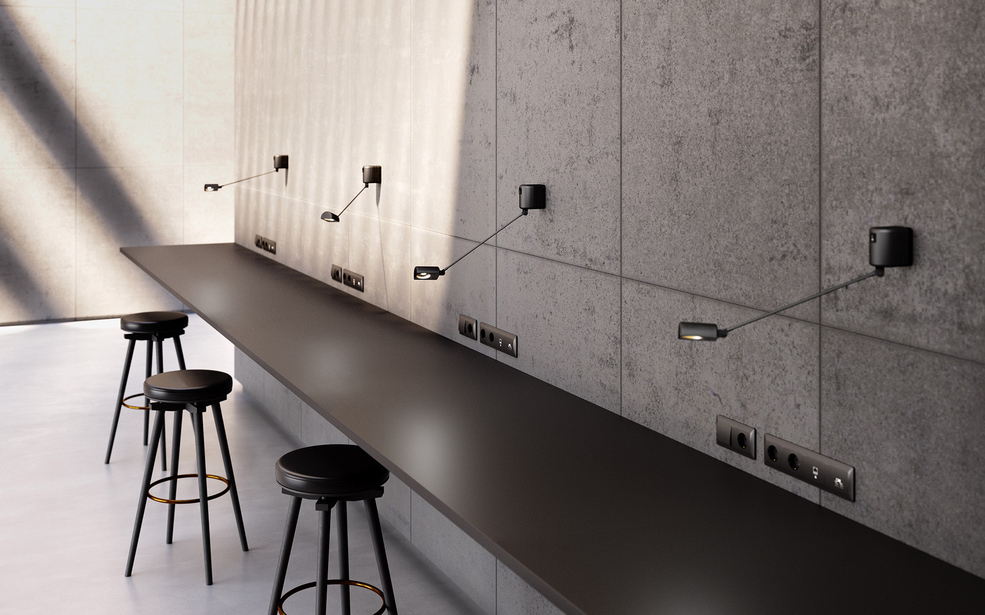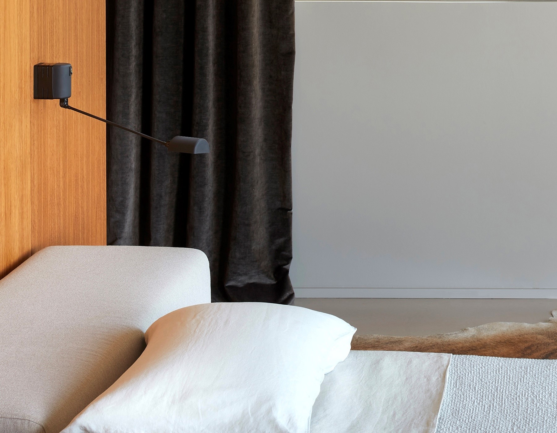 Daphine Parete from Lumina is a wall lamp with a minimalist design and an arm that can rotate 180° horizontally and 90° vertically. It is ideal for bedside tables, desks, or mirrors, with an on/off switch on the base