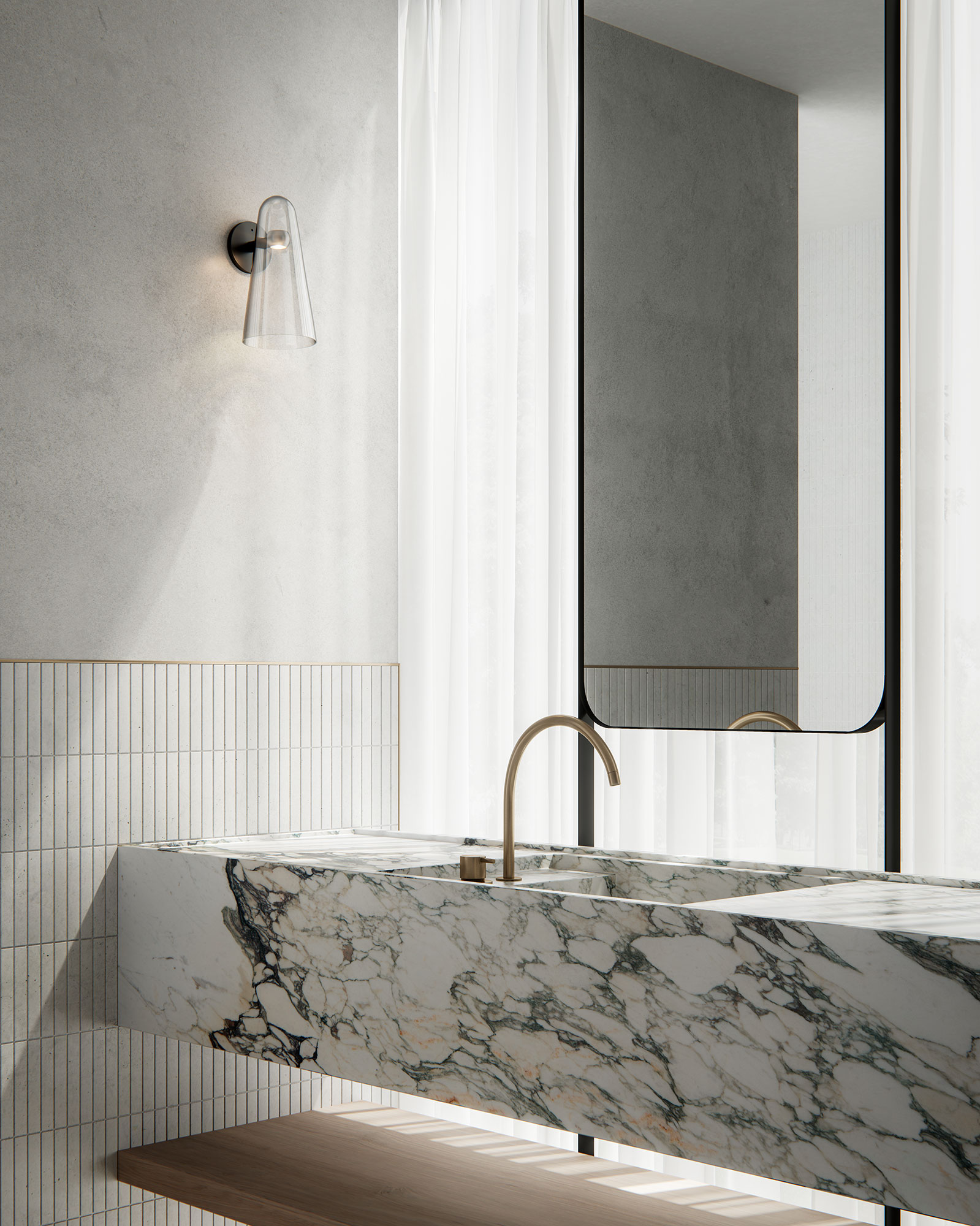 The Domi wall lamp from Articolo has a light and refined expression with its bell-shaped design and simple suspension. Every detail is carefully considered, with all components handcrafted in glass and metal – a timless design that works perfectly in the bathroom, kitchen or living room.