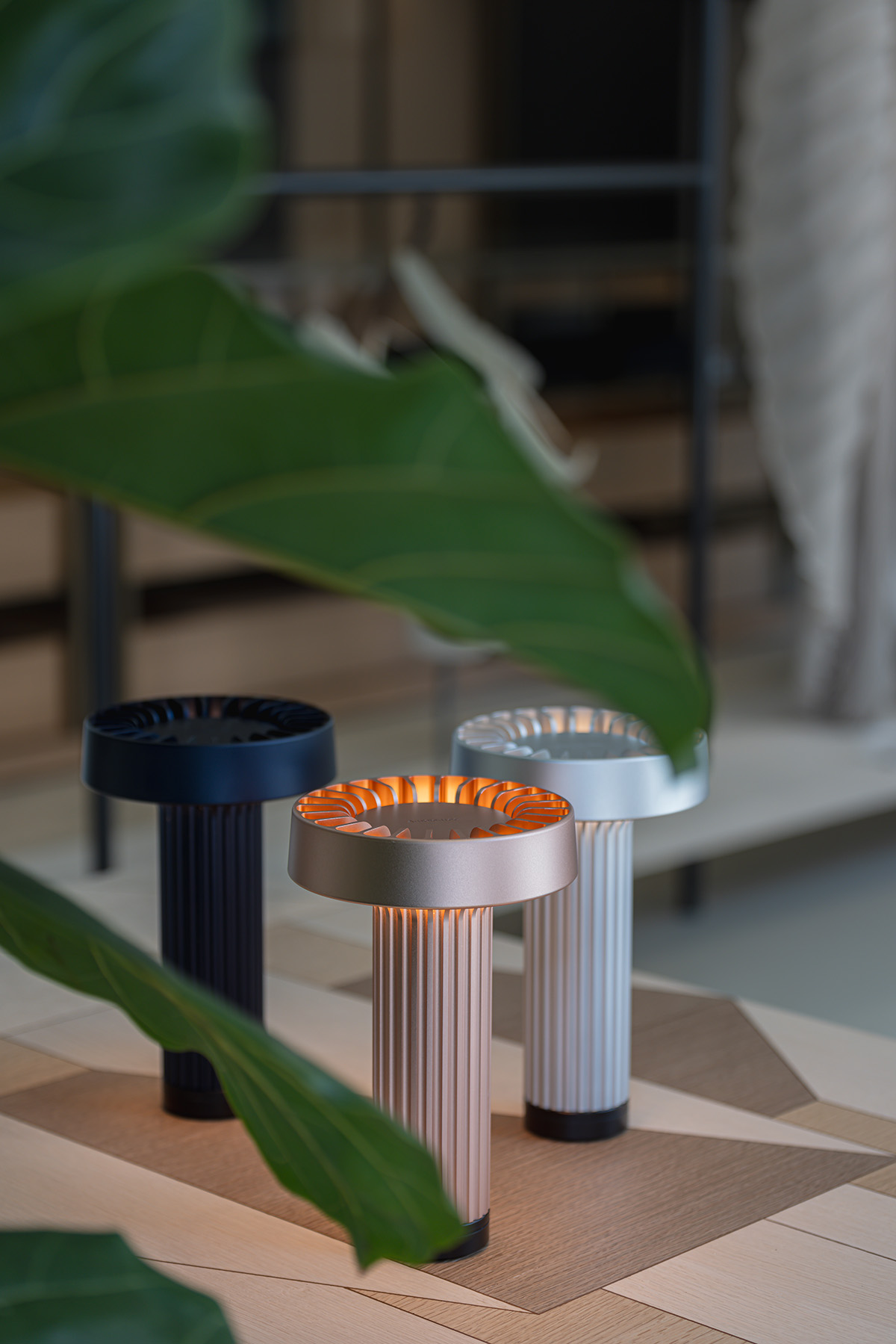 The portable table lamp Fotica is designed by Kensaku Oshiro for the Japanese brand Ambientec and is suitable for both indoor and outdoor use. Fotica is inspired by natural light and the ocean depths, specifically the “fotica zona,” where sunlight penetrates the water, creating a play of light and shadow.