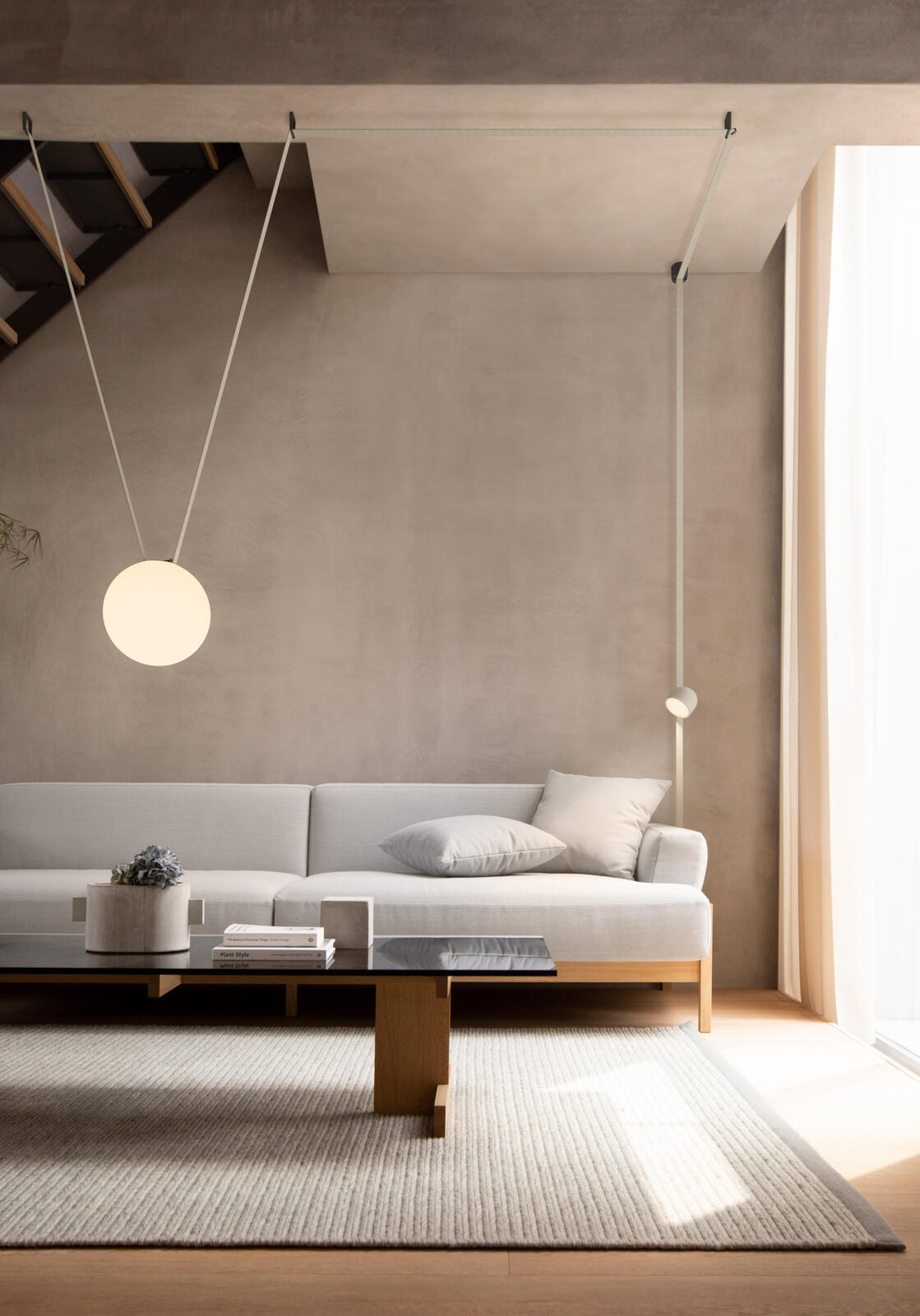 Spotlight is part of the Plusminus collection, designed by Diez Office for Vibia. Plusminus is a flexible lighting system based on a textile belt that can be combined with various luminaires, including profiles, spotlights, and pendants.
