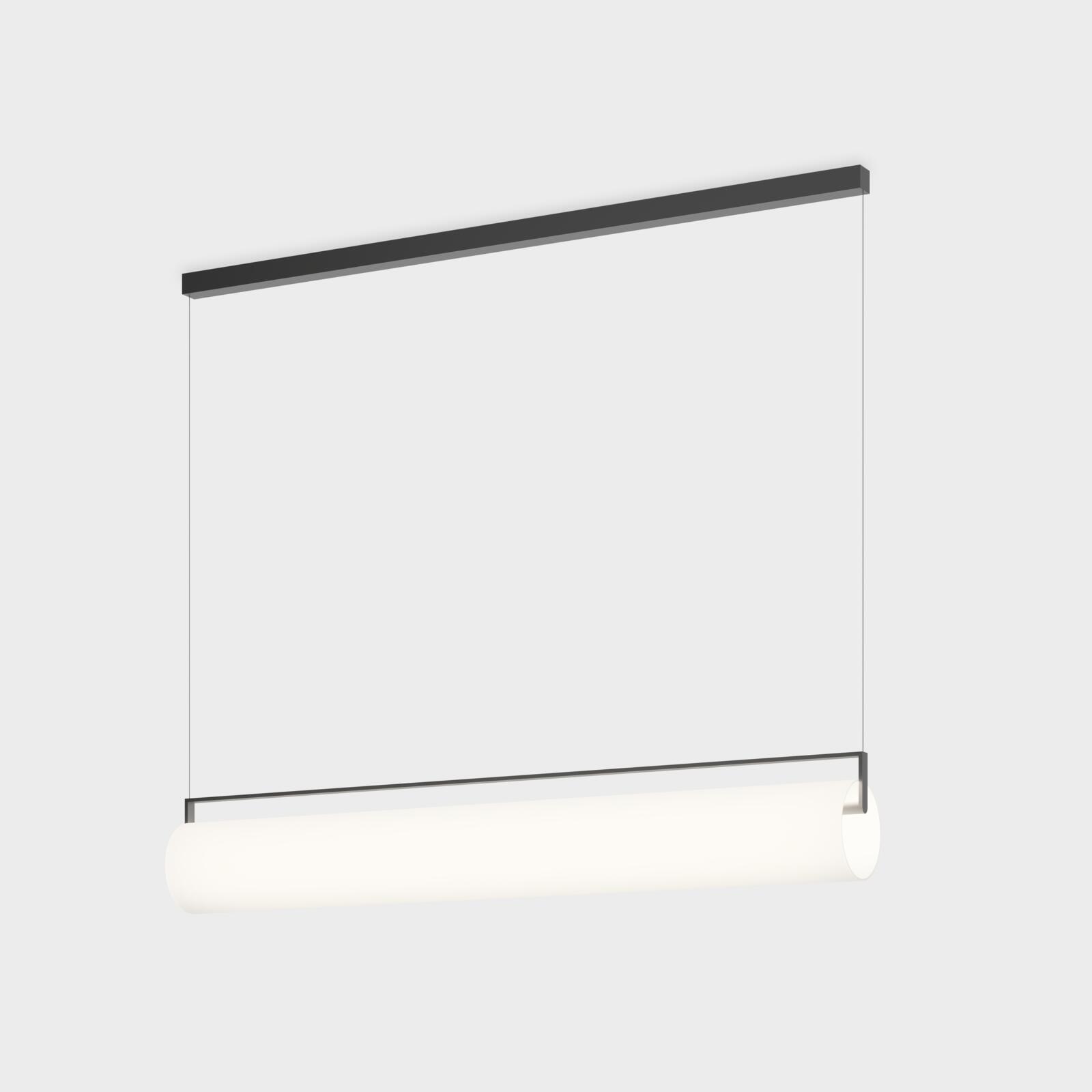Kontorno is an elegant pendant in opal glass, designed by Sebastian Herkner for Vibia. The pendant’s thin cables make it appear as if the lamp is floating, while the cylindrical diffuser spreads light evenly throughout the space.