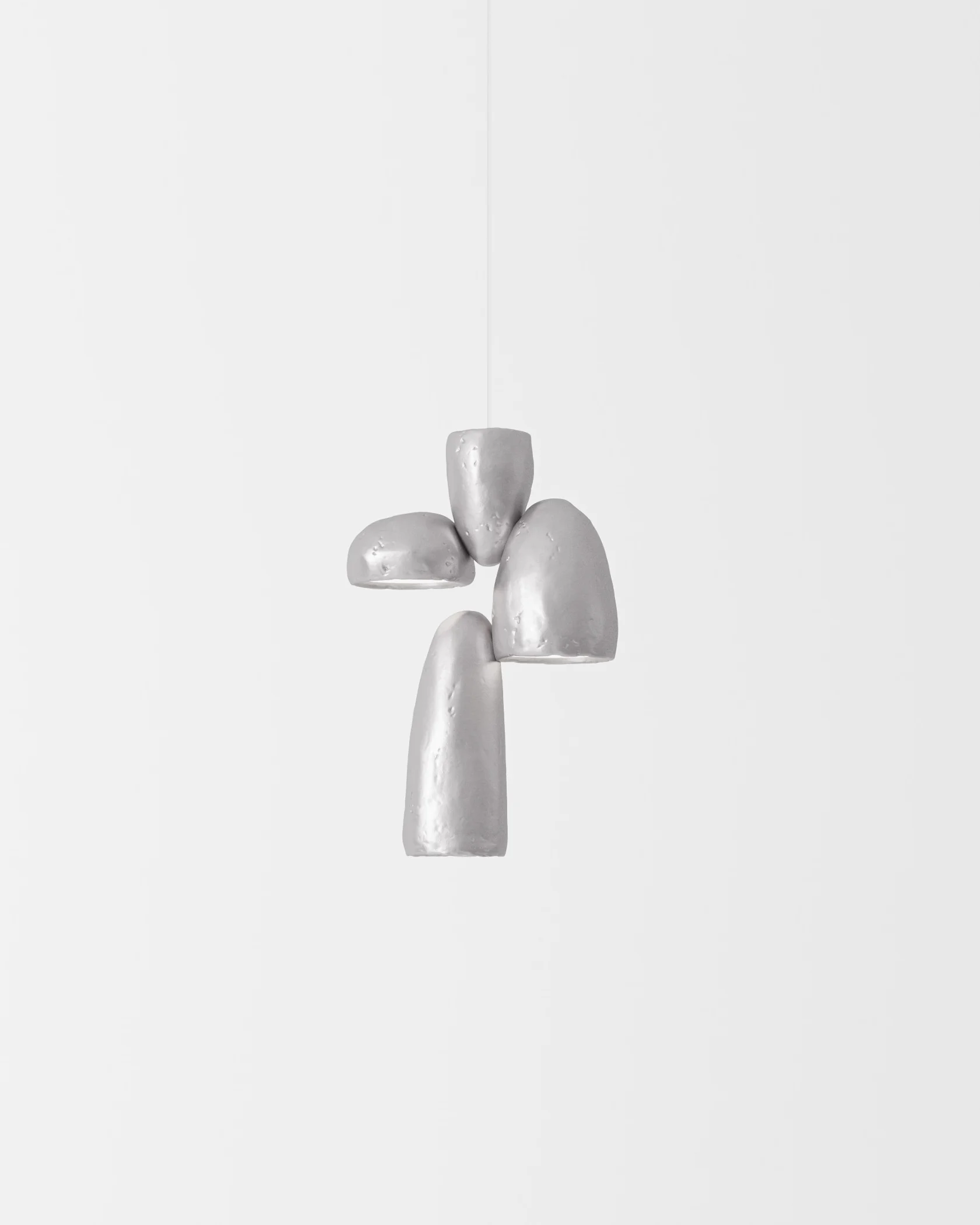 Scarabei Pendant by Giopato & Coombes was presented during Milan Design Week 2025. The collection is inspired by natural processes and organisms that grow and evolve in constant transformation – a luminous installation where traditional craftsmanship meets experimentation with raw textures, organic forms, and materials.
