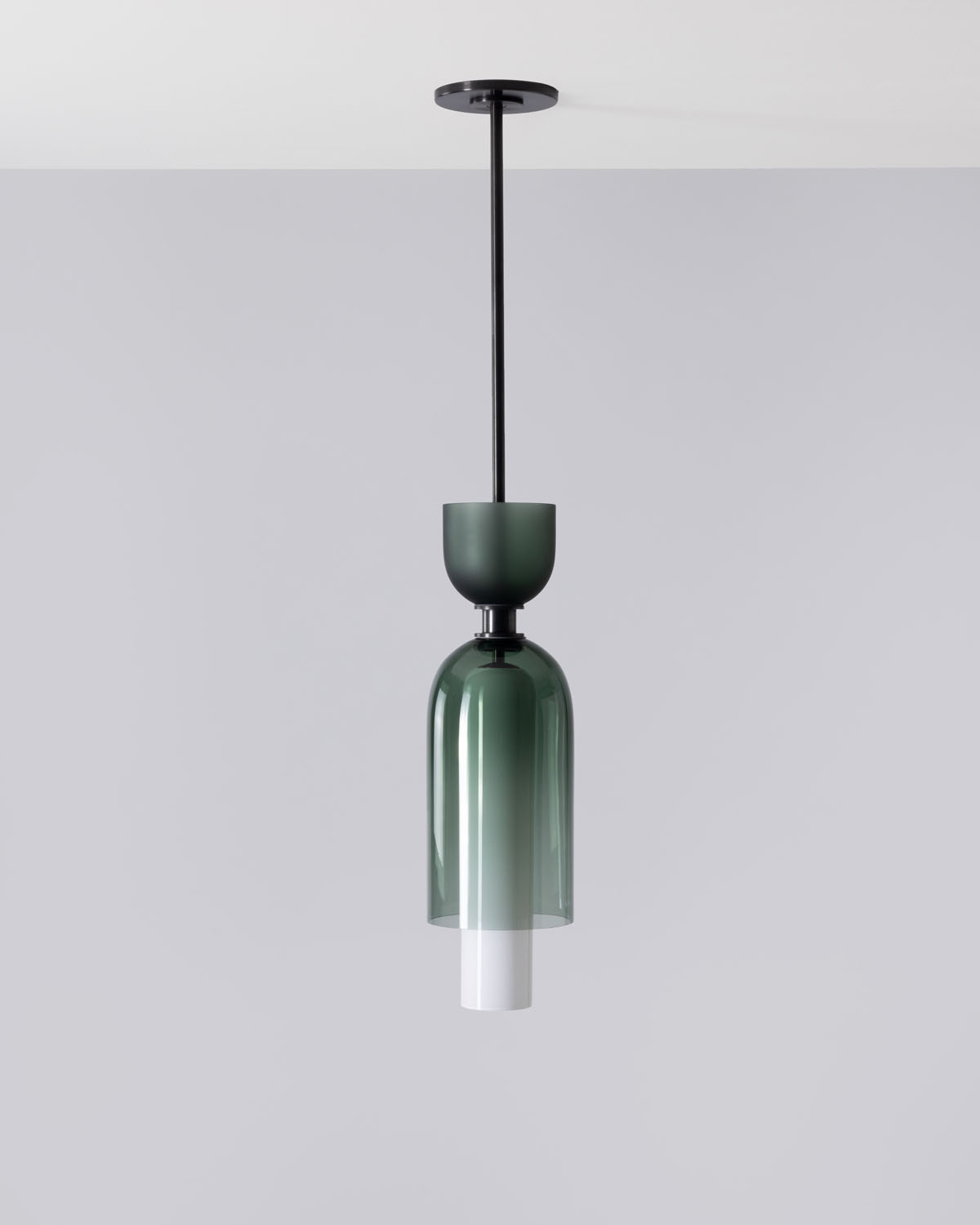 The Union Small Pendant from SkLO and AvroKO’s new design collaboration combines different types and colors of handblown Czech glass as well as finishes for the suspension.