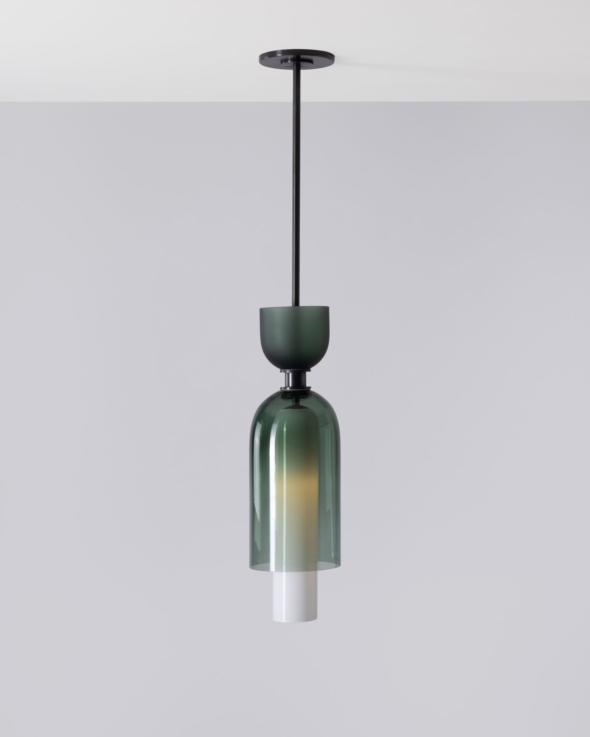 The Union Small Pendant from SkLO and AvroKO’s new design collaboration combines different types and colors of handblown Czech glass as well as finishes for the suspension.