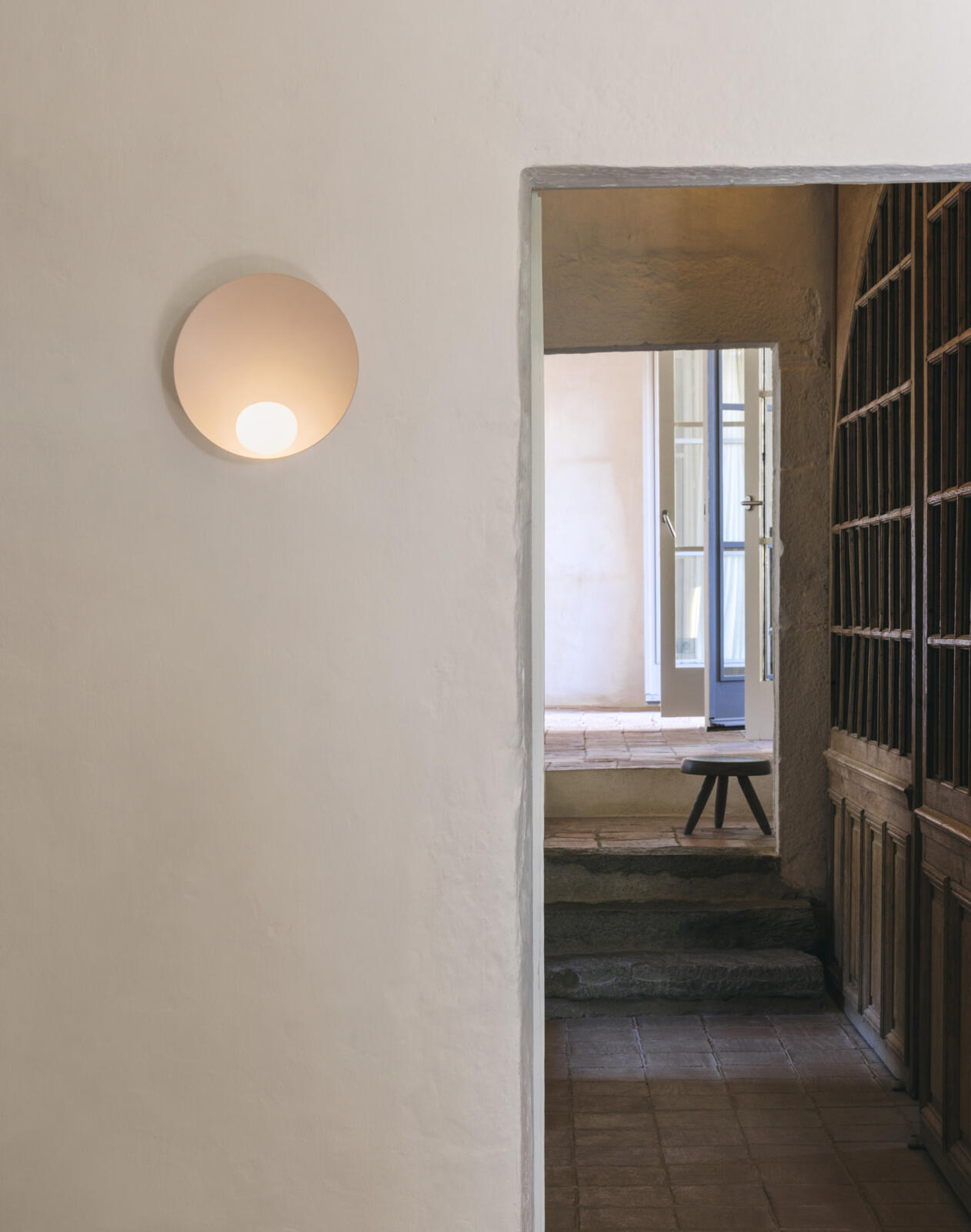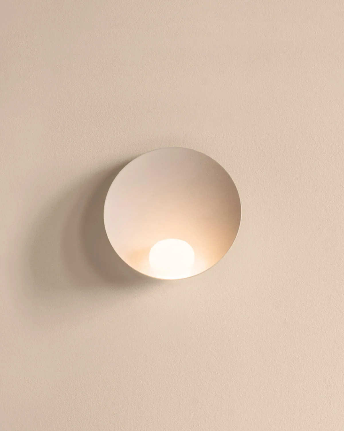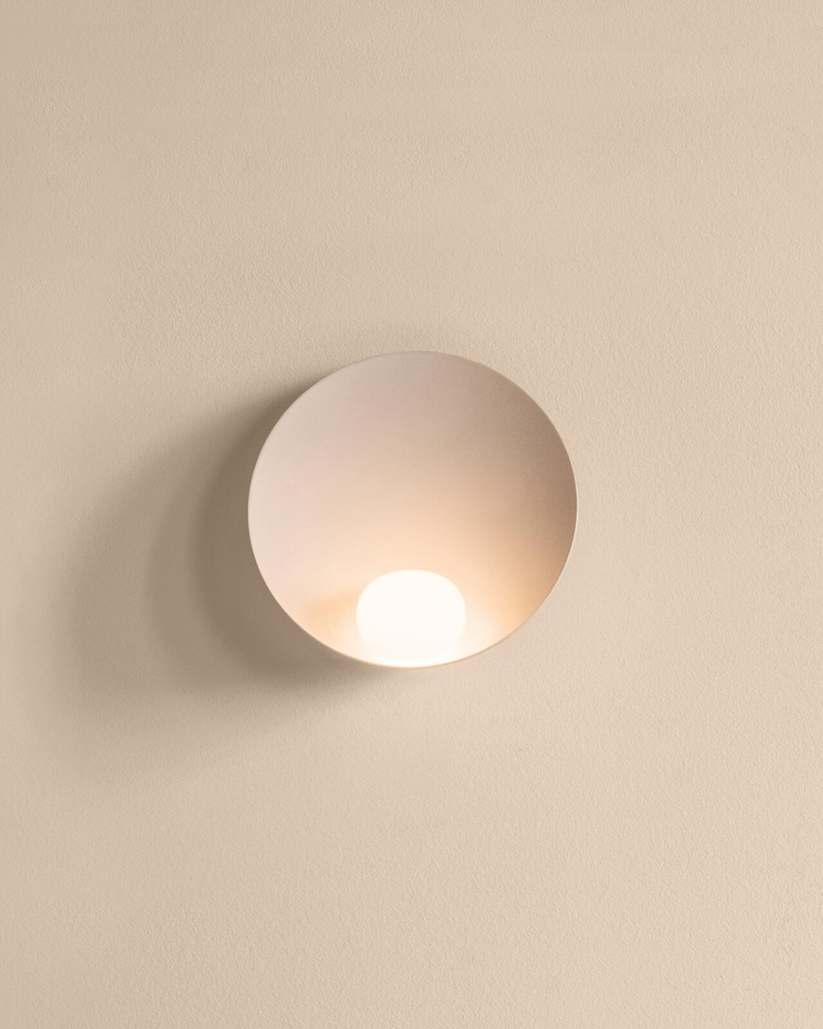 The decorative wall lamp Musa, designed by Note Design Studio for Vibia, features a small hand-blown opal glass sphere reflected in its organic, rounded design. Musa is available in three light tones.