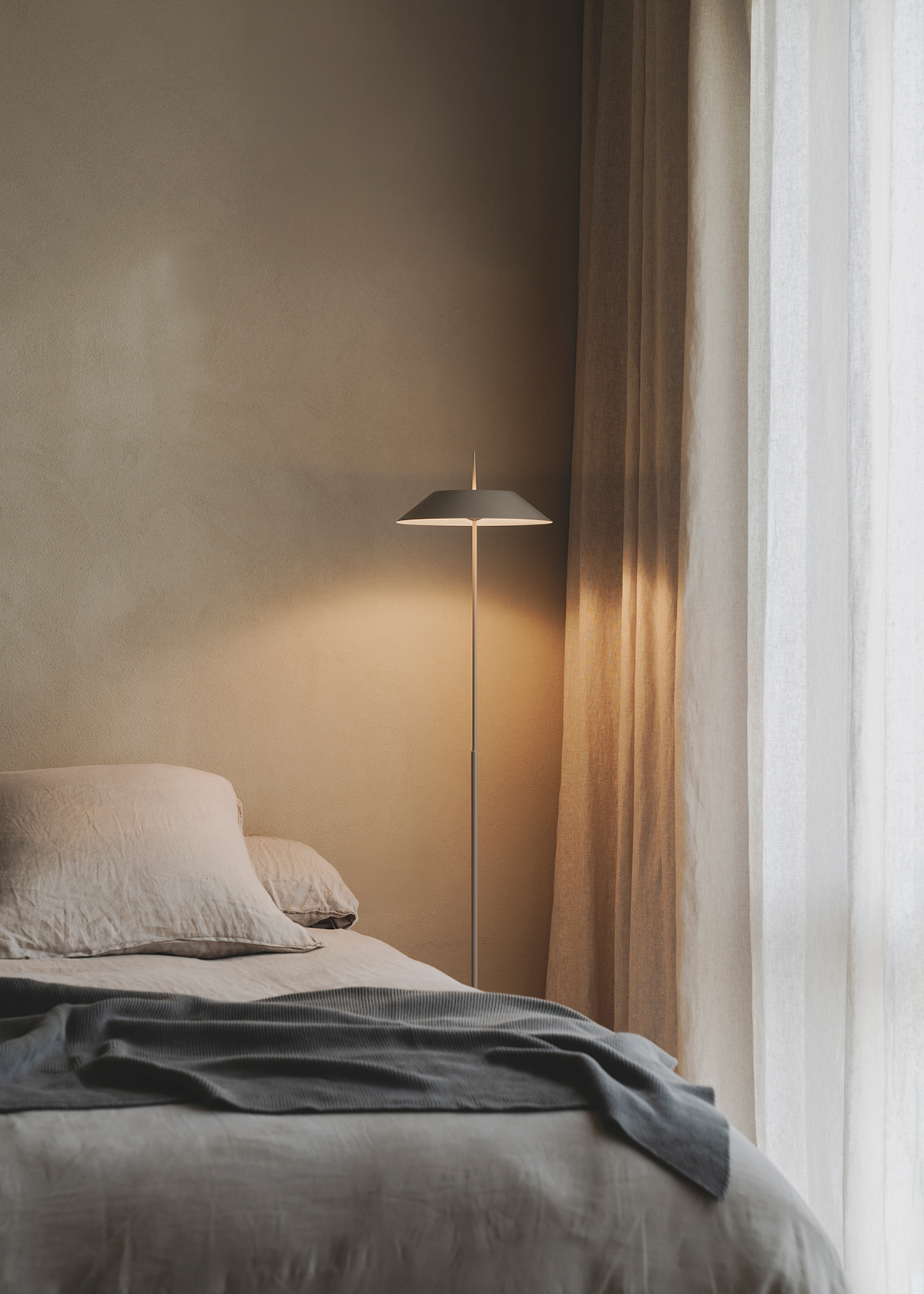The Mayfair floor lamp is designed by Diego Fortunato for Vibia. Its slim, minimalist design brings a light and elegant presence to the space and is available in a range of different materials and finishes.