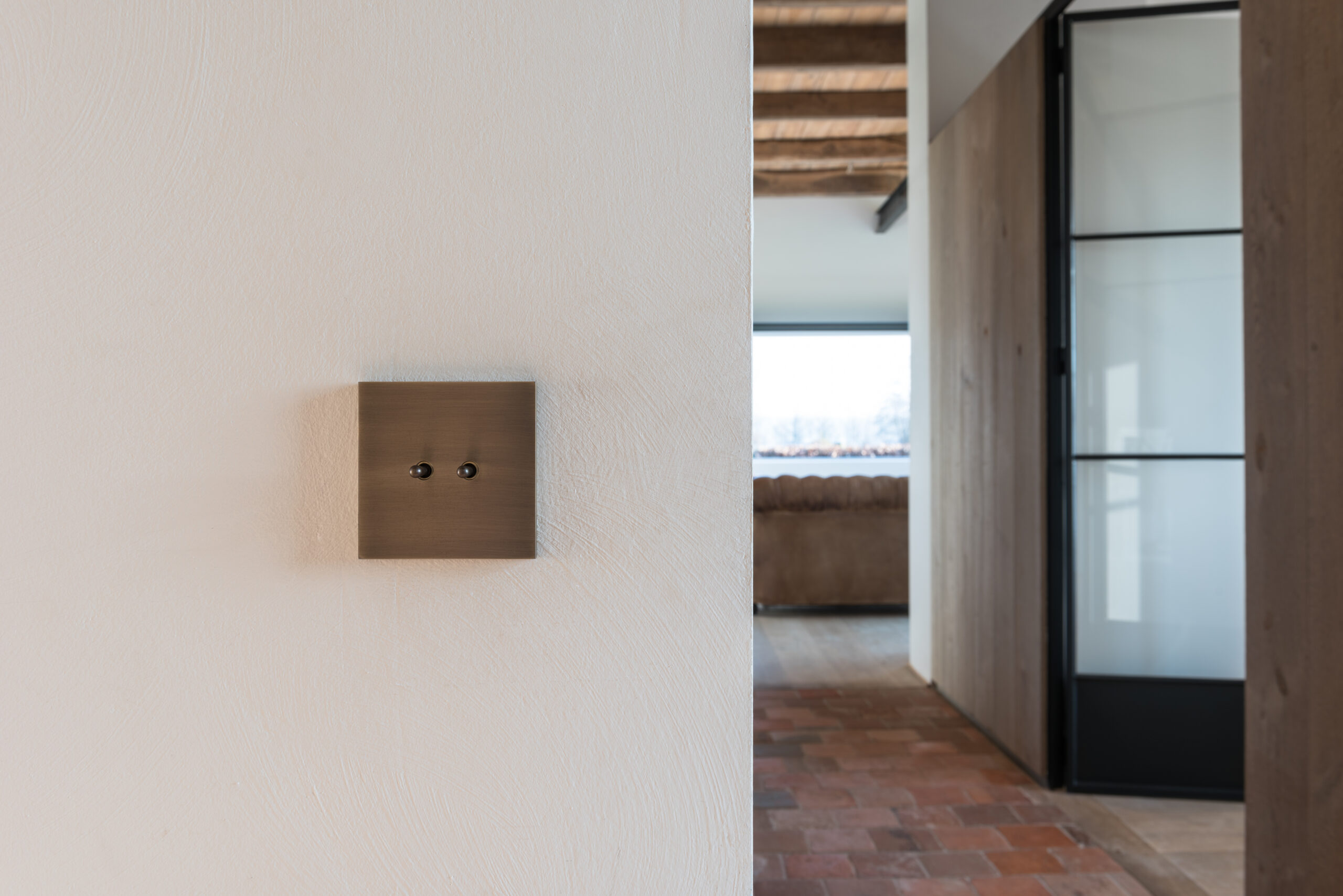 Nina from Belgian CJC Systems is a 230V switch panel with a round switch pin. Nina is available in both square and rectangular designs, with 38 different finishes or a customizable RAL color of your choice.