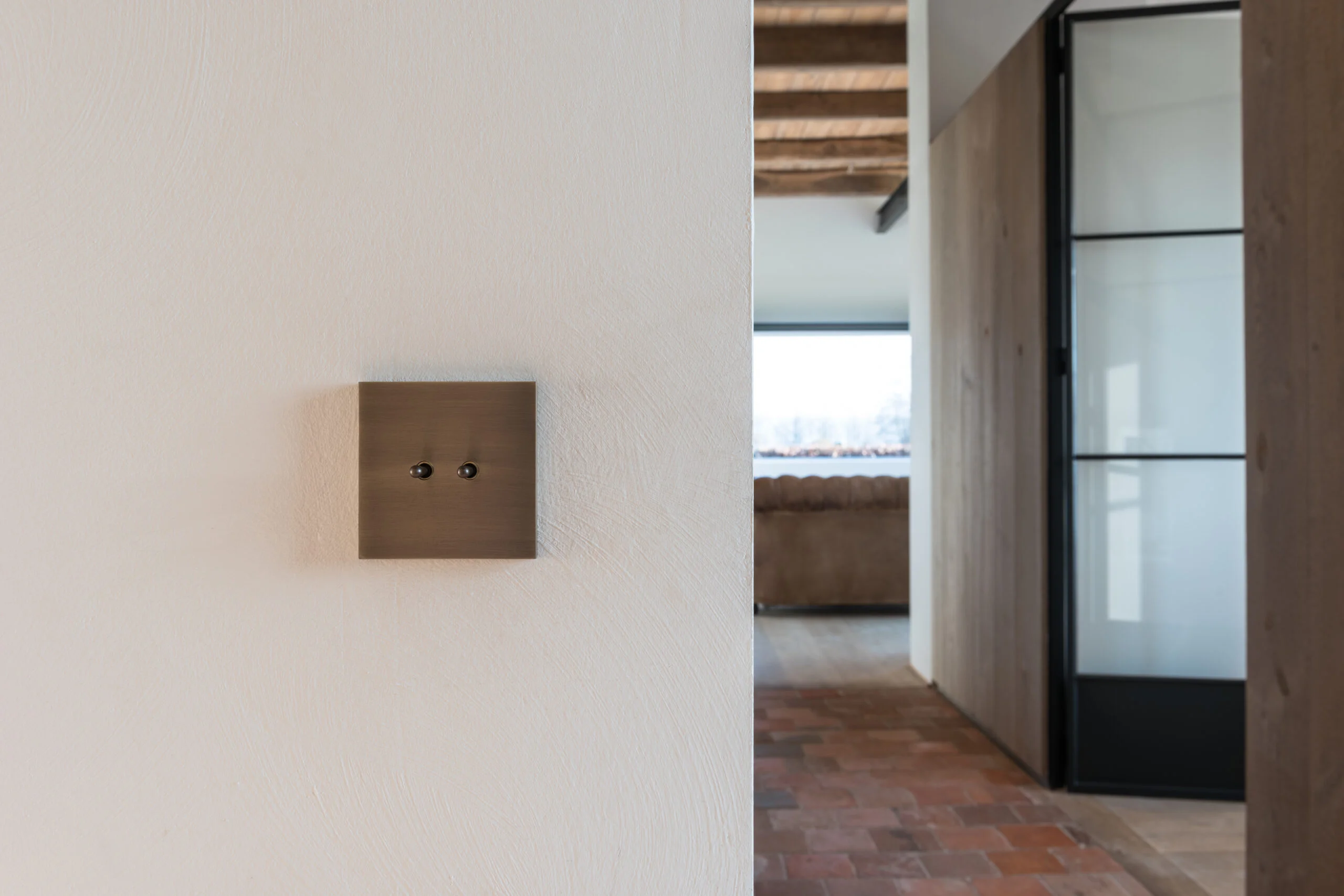 Nina from Belgian CJC Systems is a 230V switch panel with a round switch pin. Nina is available in both square and rectangular designs, with 38 different finishes or a customizable RAL color of your choice.