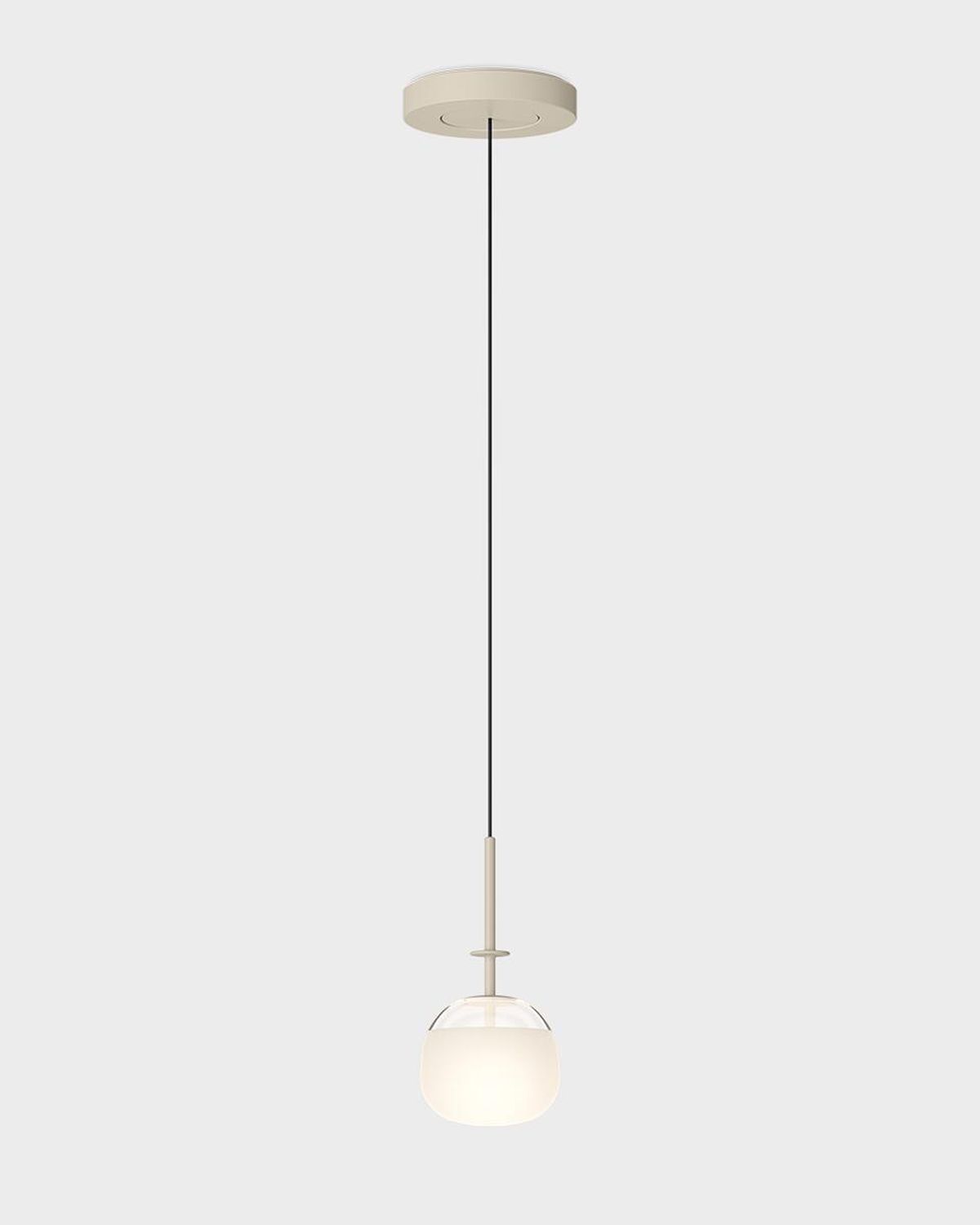 The Tempo collection is designed by Lievore Altherr for Vibia. The oval milk glass pendant comes in two different sizes and plays with light through the interplay of transparent and frosted glass. The pendant can hang alone or be combined in various configurations.