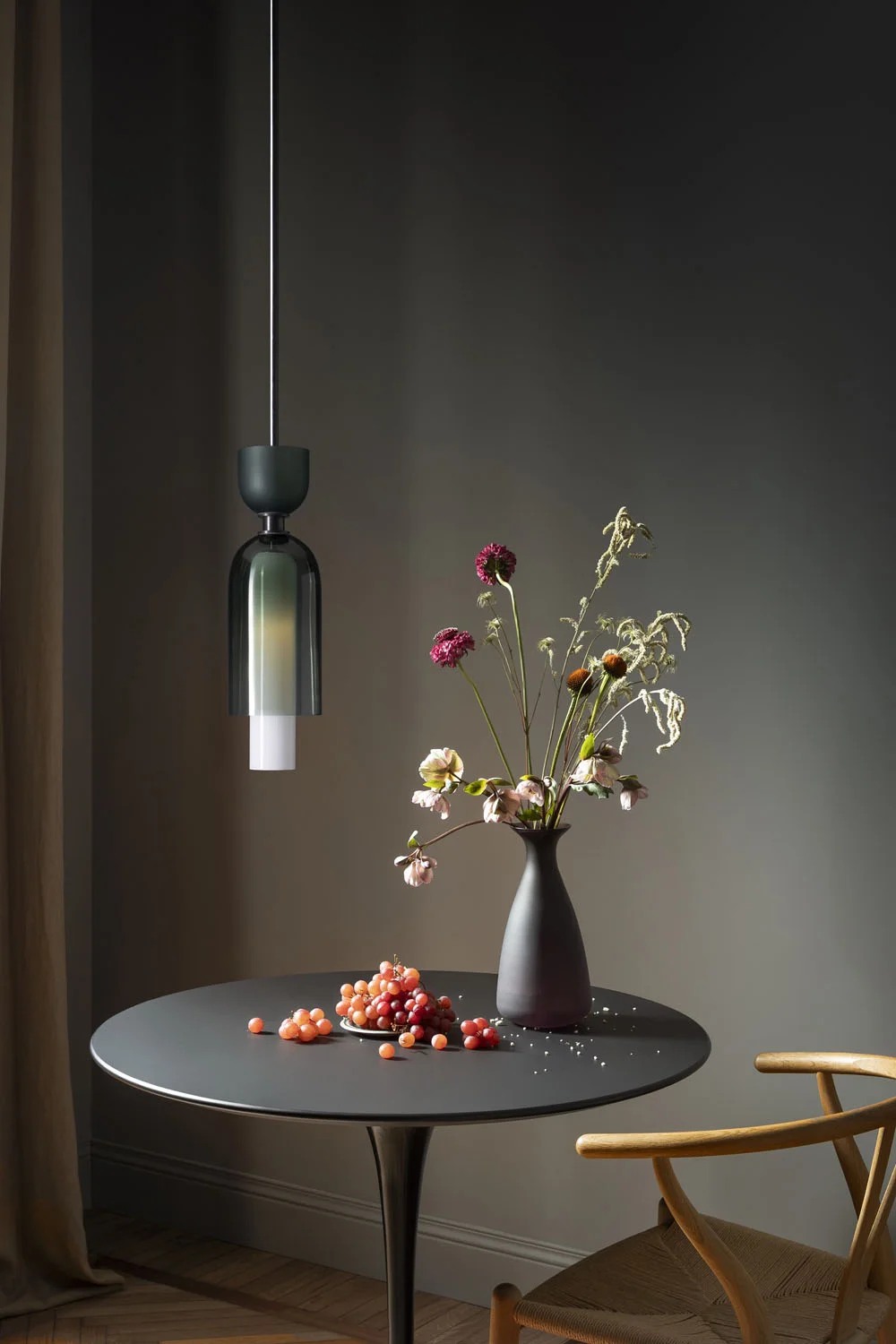 The Union Small Pendant from SkLO and AvroKO’s new design collaboration combines different types and colors of handblown Czech glass as well as finishes for the suspension.