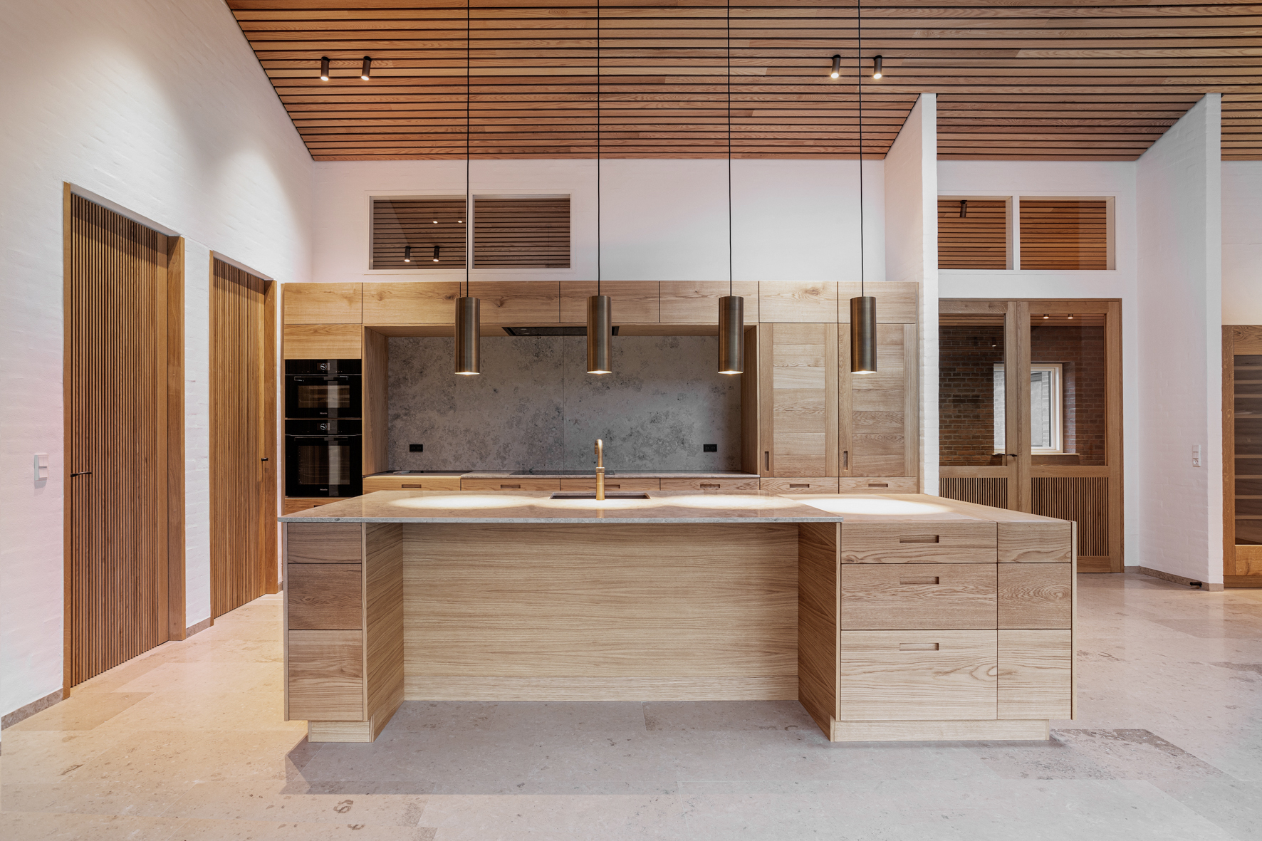 In a newly built residence with references to 70’s bricks and wooden ceiling panels, we have created a lighting plan in collaboration with the owner, that suits the chosen materials and fits into the interior.