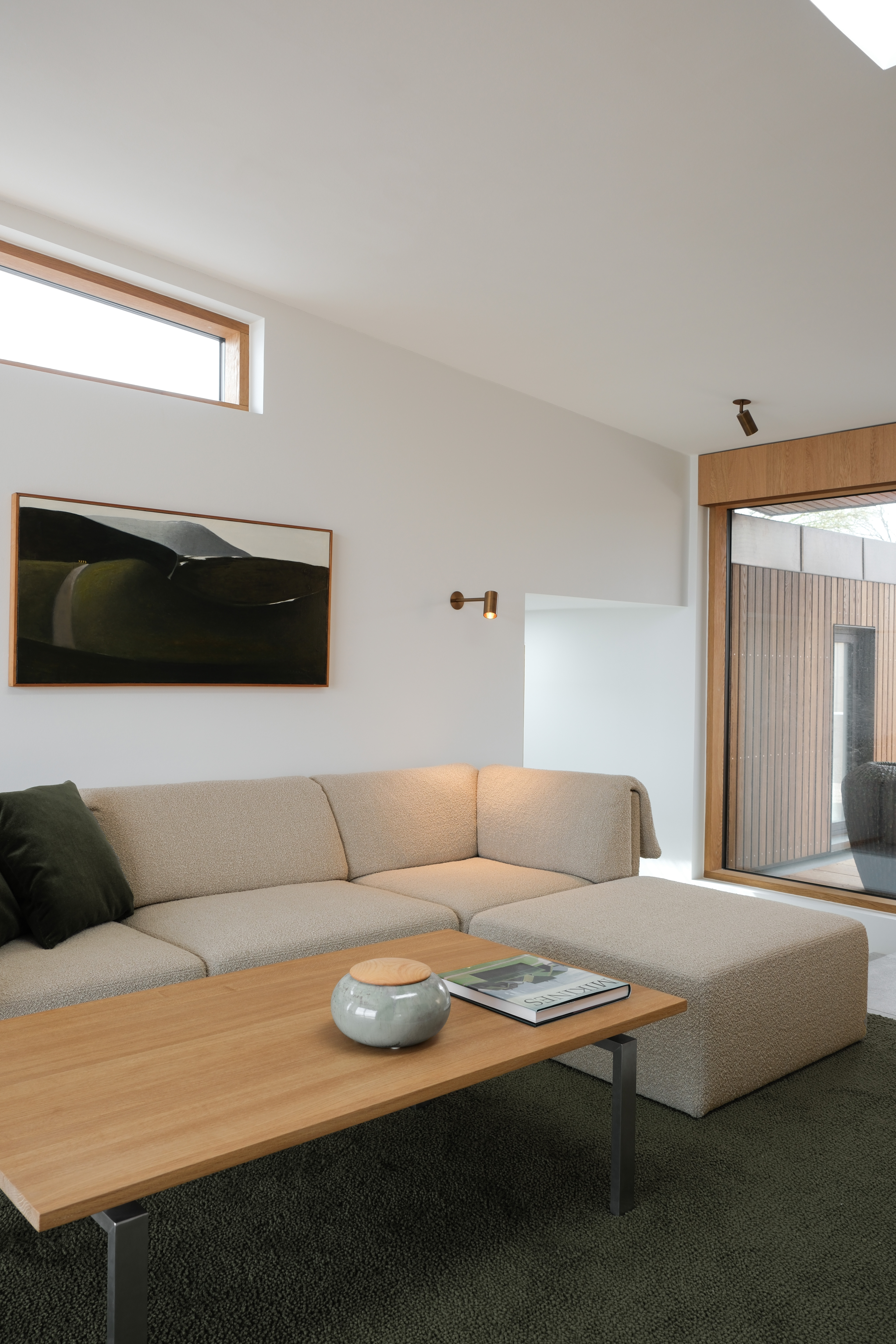 In a newly built summer house facing the coast, we have worked on tailoring a lighting plan that both complements the natural daylight during the day and fits into the minimalist design.