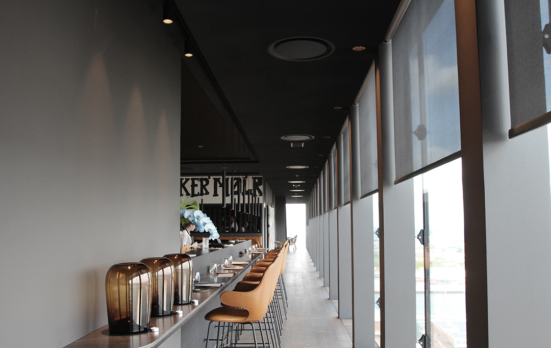 On the 17th floor of The Silo, we tailored a lighting plan that harmonizes with the restaurant’s dark and elegant interior.