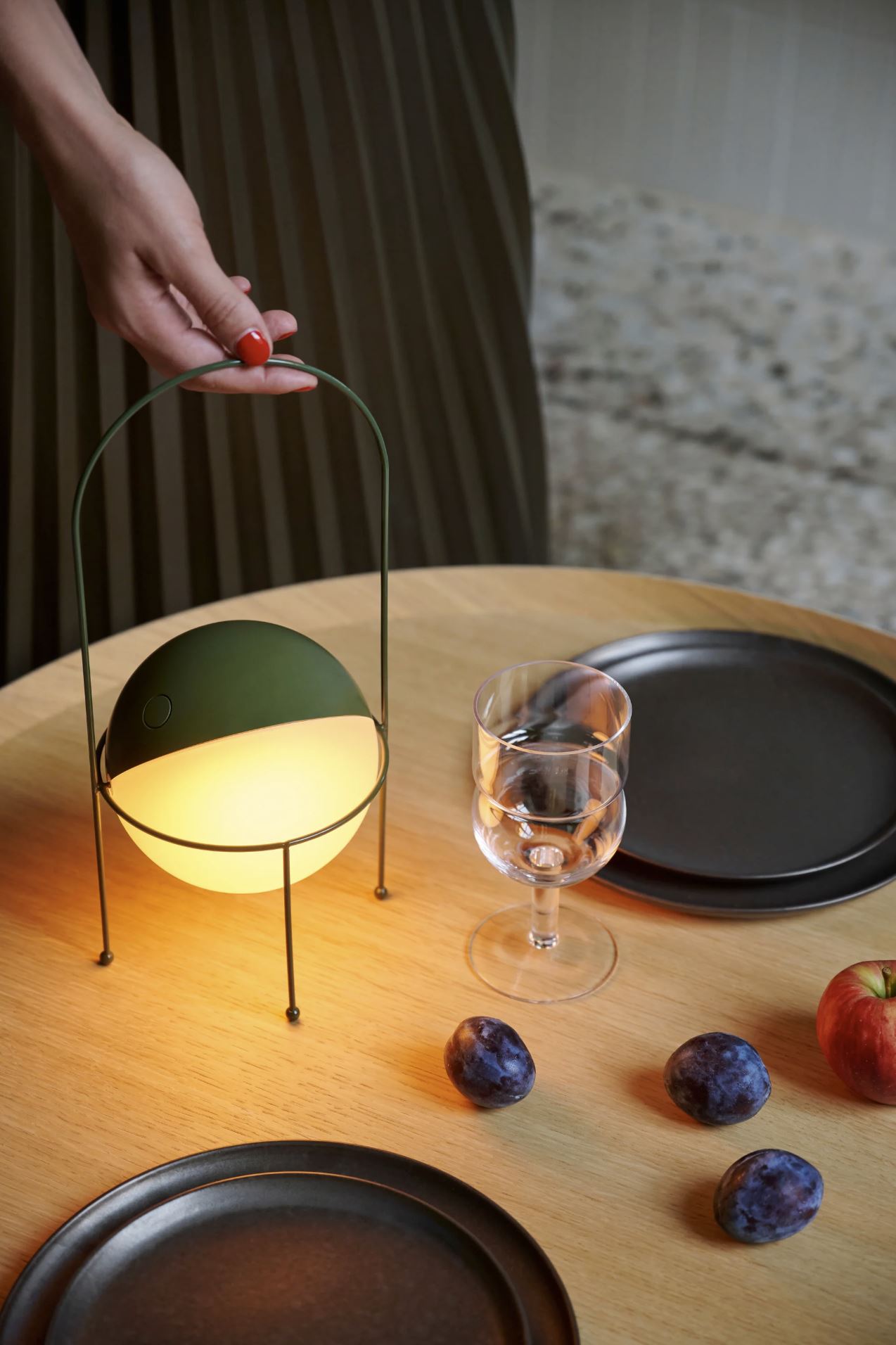 Madco er en moderne lanterne fra Ambientec, designet sammen med Elisa Ossino. Den har en 360° roterbar kugleformet lyskilde og fås med en bund i fem farver: oliven, fersken, kakao, sennep og kirsebær. Madco er nem at oplade via USB type-C og er vandtæt (IP66), hvilket gør den ideel til både indendørs og udendørs brug.