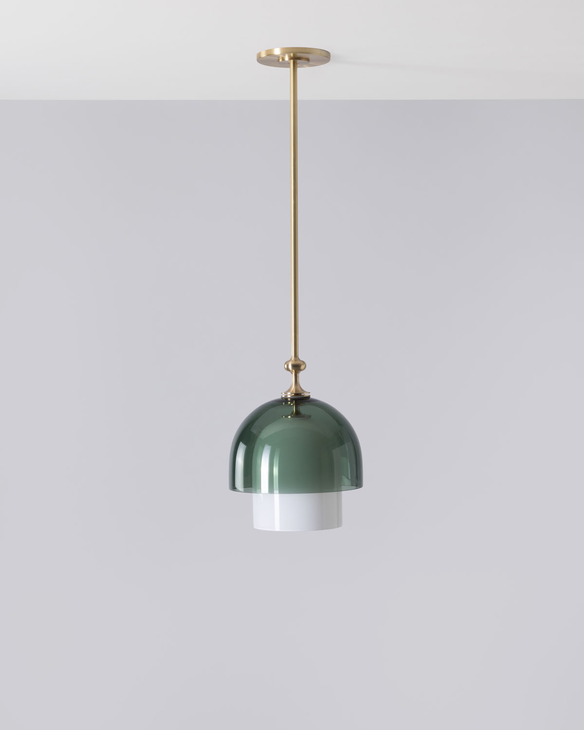 Elizabeth II pendlen fra SkLO og AvroKO’s nye design samarbejde kombinerer forskellige typer og farver af mundblæst glas samt finishes til ophænget.