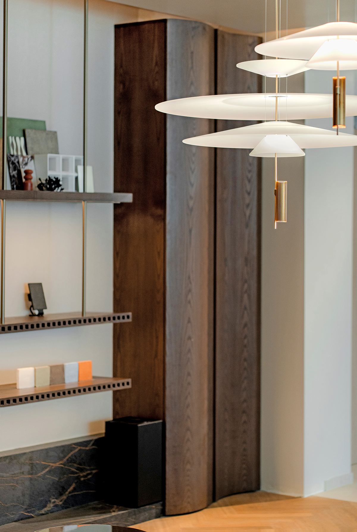 Flamingo pendlen er designet af Antoni Arola for Vibia og kombinerer et elegant design med et blødt og behageligt lys. Flamingo fås i flere forskellige udtryk med en eller flere skærme, der både kan vende op og ned.