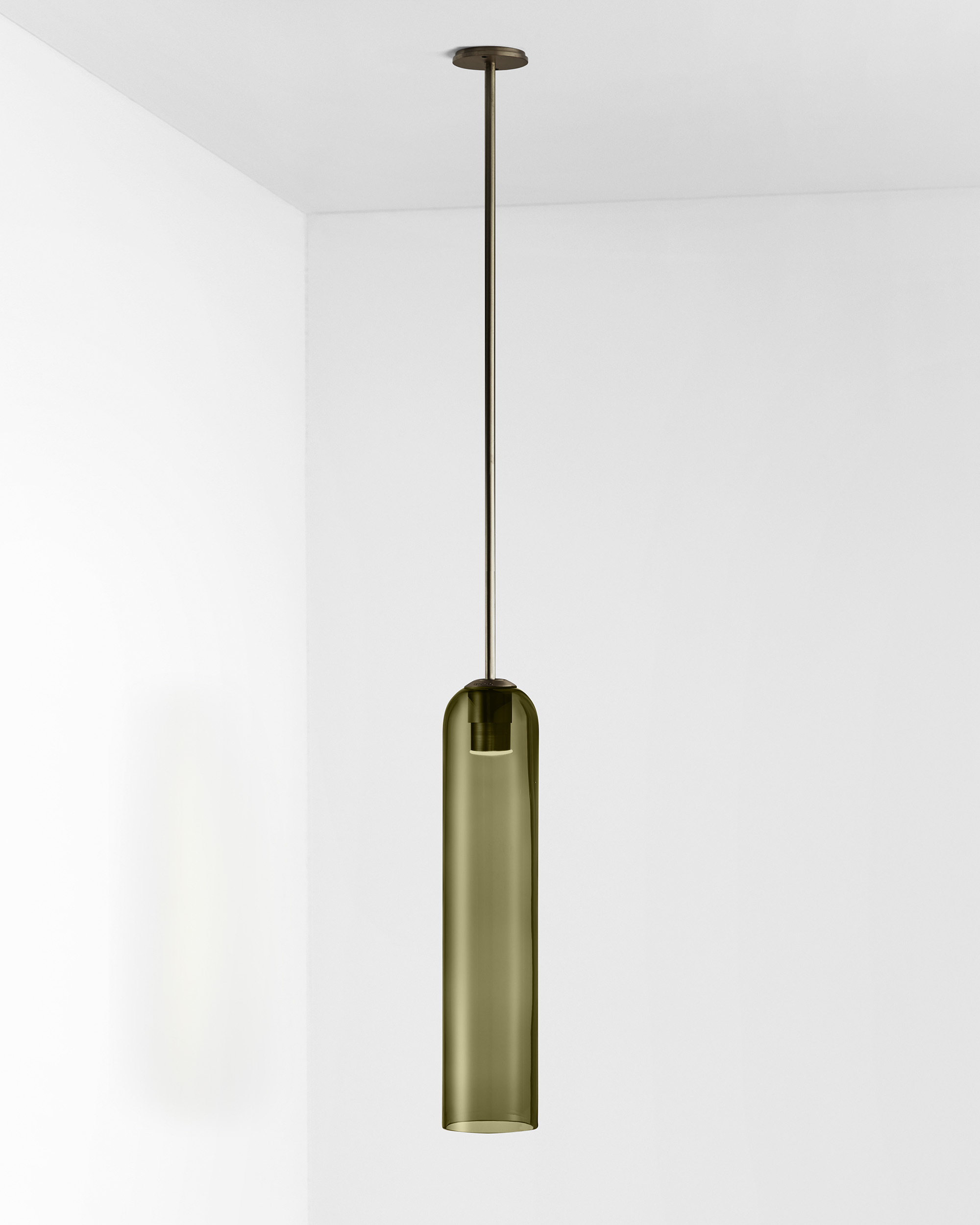 Float er en elegant, cylinderformet pendel fra Articolo. Den er håndlavet i glas og metal, og fås i flere forskellige glasfarver og finishes på ophænget.