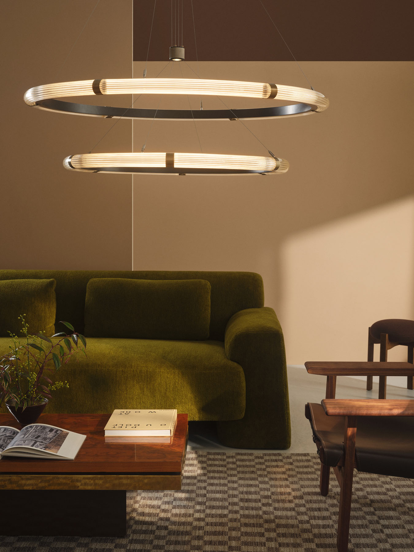 Strata Circular Two-Tier Pendant fra J. Adams & Co er en udvidelse af den eksisterende Strata kollektion. Pendlen kombinerer to riflede glas- og messing ringe i en skulpturel og moderne konstellation. En indbygget spotlight giver ekstra lys nedad, hvilket gør lampen velegnet til høje rum som trappeopgange, foyerer og større stuer.
