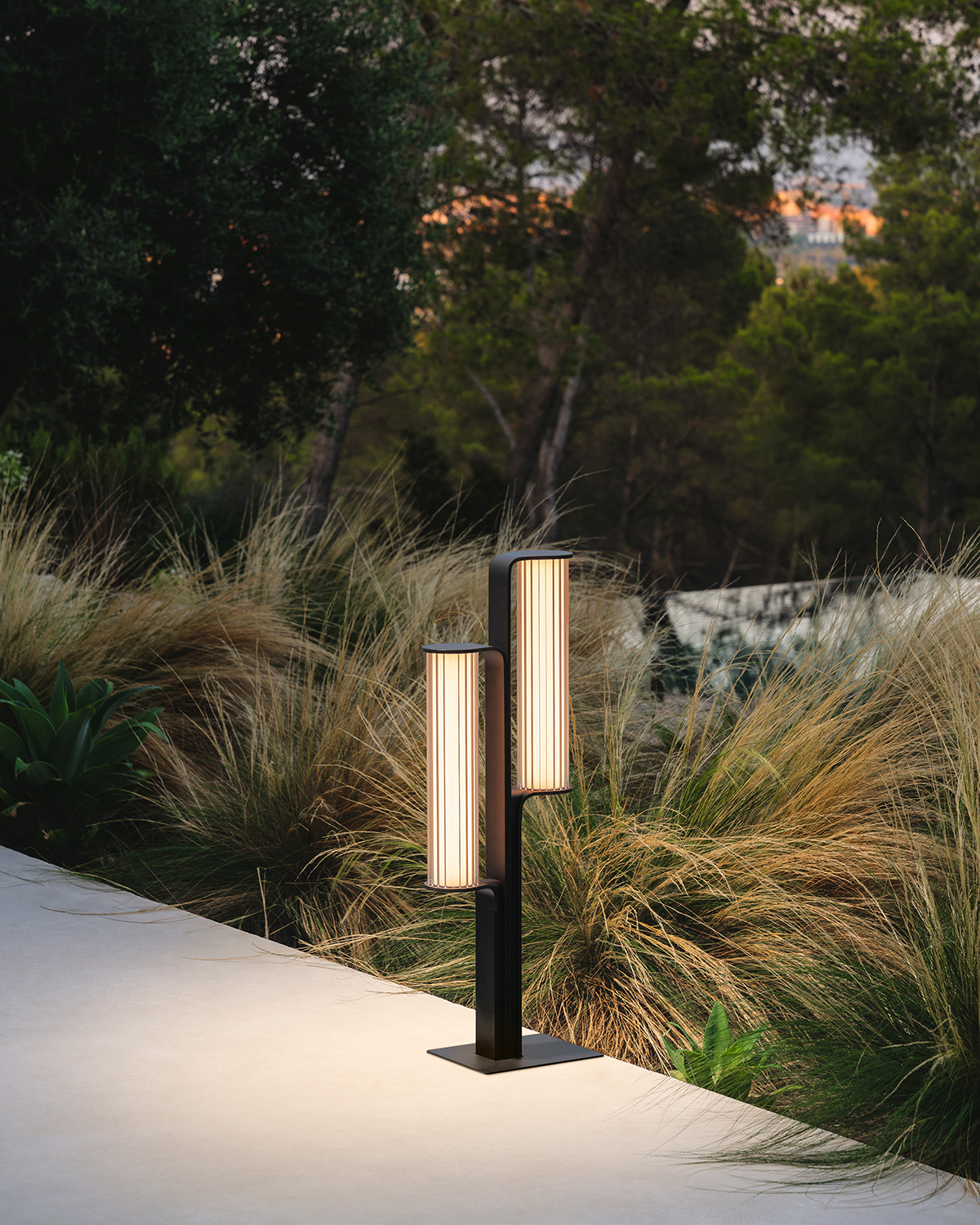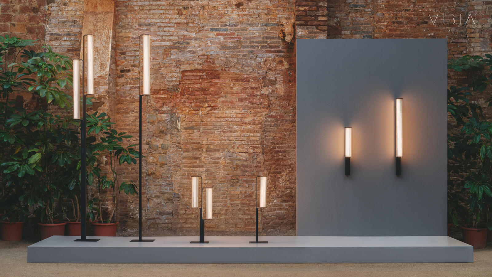 Class Floor er en elegant udendørs lampe designet af Sebastian Herkner for Vibia. Det riflede glas spreder et hyggeligt og behageligt lys til udearealer, mens den mørke aluminiumsbase skaber en fin kontrast til glasset.