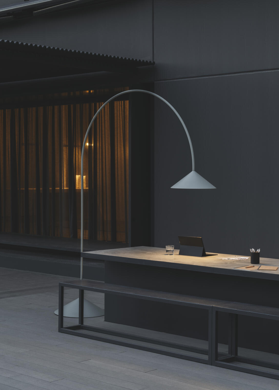 Out er en udendørs gulvlampe designet af Víctor Carrasco for Vibia. Out skaber en hyggelig stemning til terrassen med sit bløde, diffuse lys. Designet er inspireret af blomster, der står og svajer i vinden om sommeren.