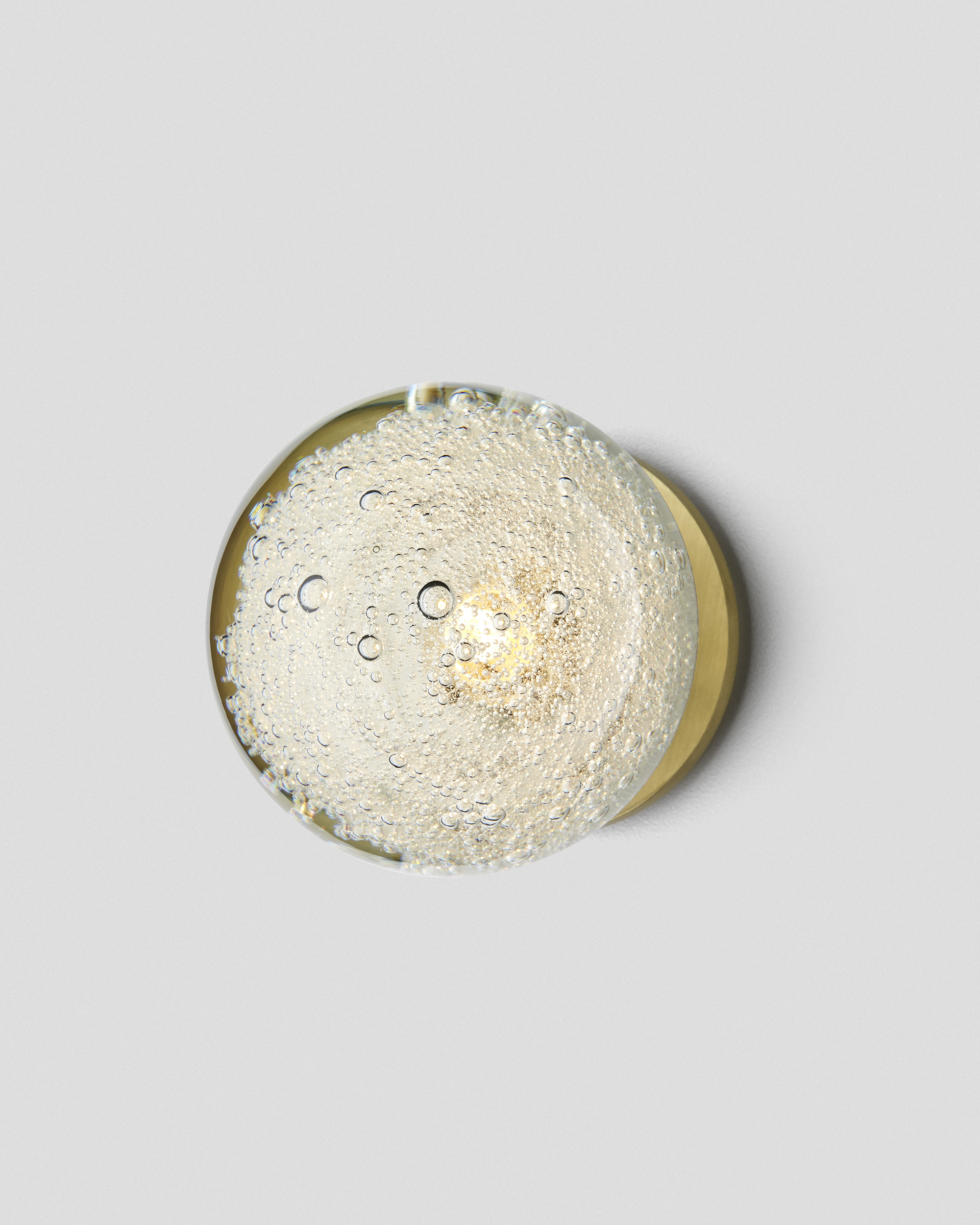 Den elegante Fizi væglampe fra Articolo har små bobler inde i glasset, der bruser som boblerne i champagnen. Lampen er designet i håndlavet glas og metal, og er en fin løsning til at fra badeværelset eller soveværelset til restauranter og erhverv.