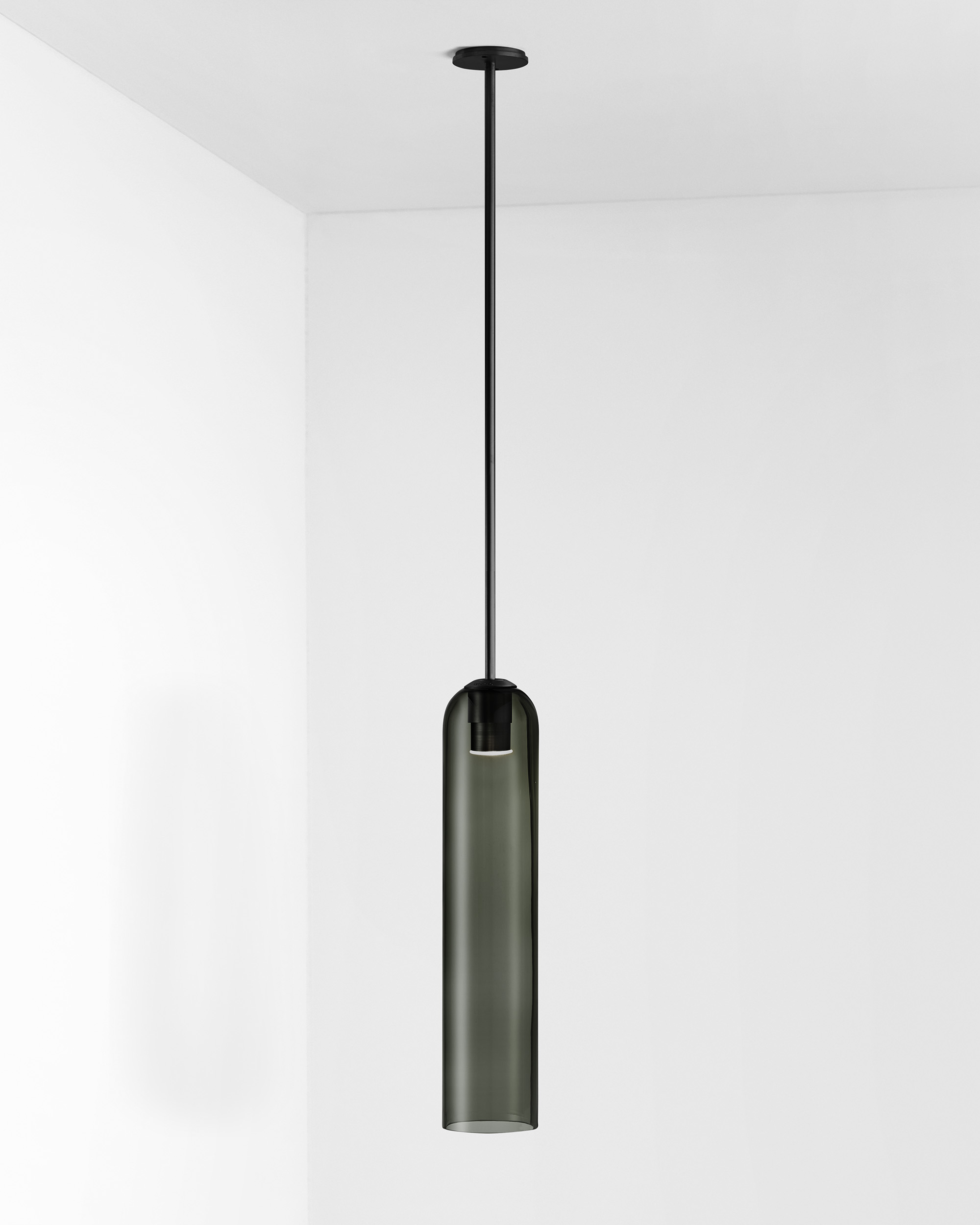 Float er en elegant, cylinderformet pendel fra Articolo. Den er håndlavet i glas og metal, og fås i flere forskellige glasfarver og finishes på ophænget.