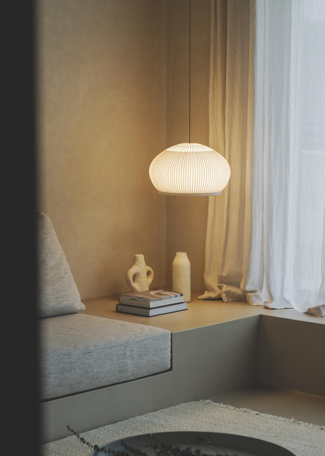 Knit Pendant er designet af den tyske designer Meike Harde for Vibia. Pendlen skaber en varm og indbydende atmosfære med sit bløde, tekstile udtryk, hvor elastisk lycra er strikket i fine ribstrukturer, der giver et 360-graders diffust lys. Knit pendlen kommer i fem forskellige størrelser – se galleriet.