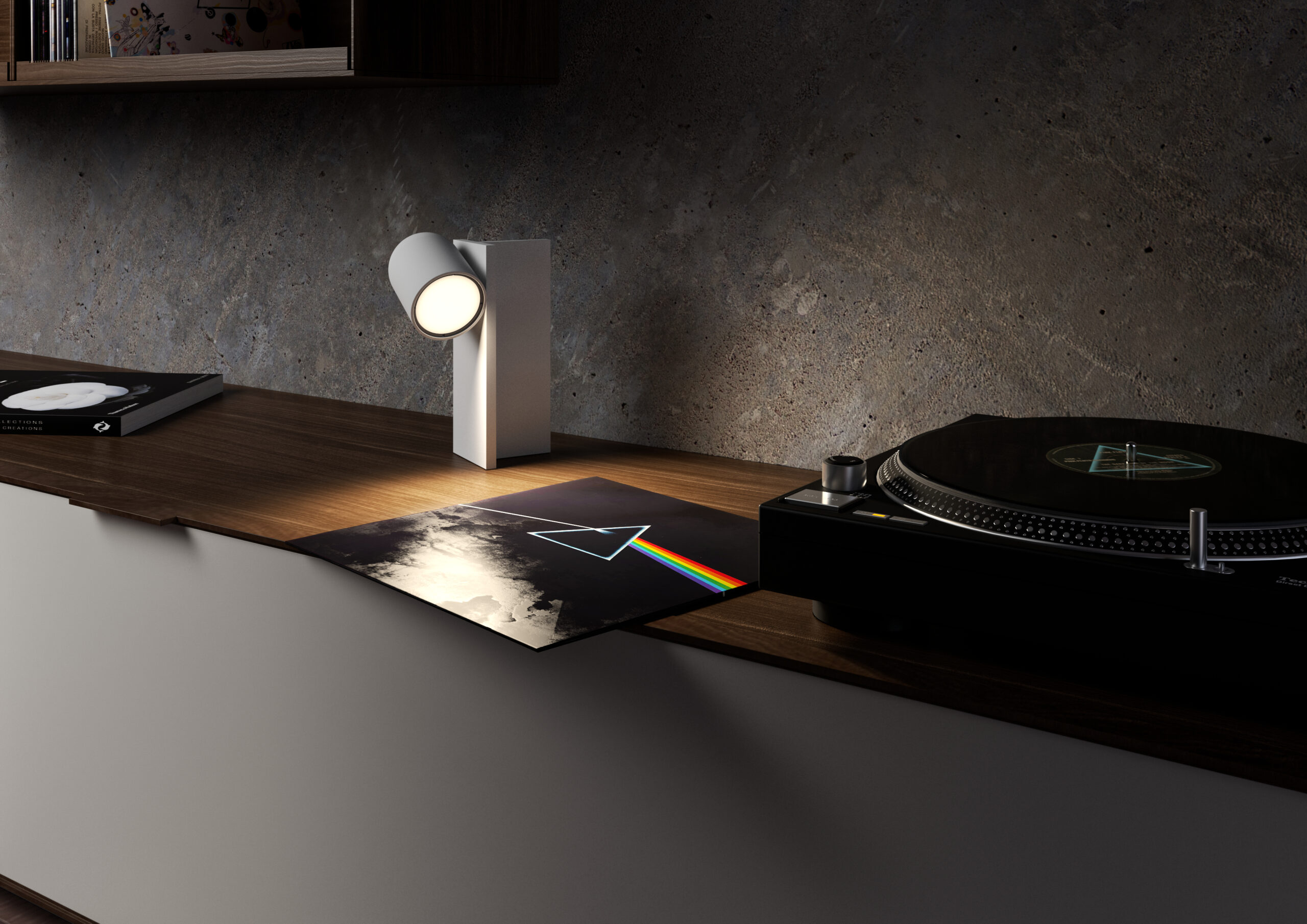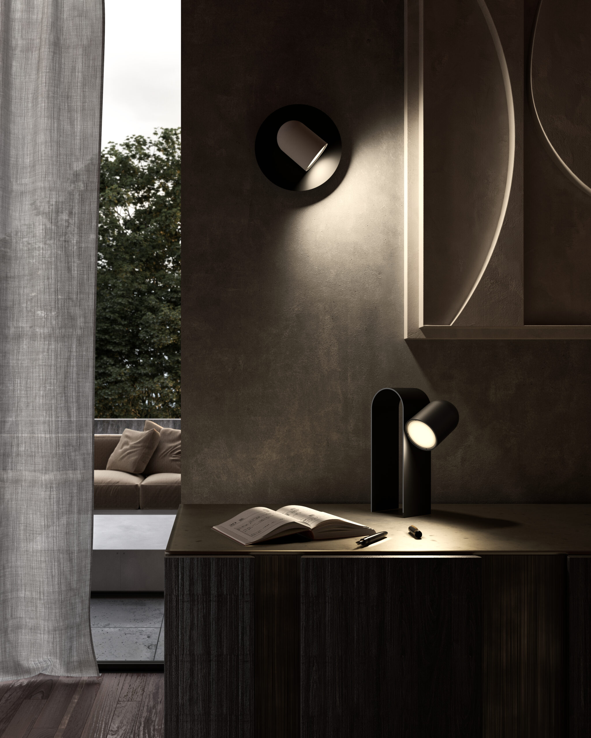 Perdue er en bærbar og genopladelig lampe designet af Riccardo Marcuzzo for Lumina. Den tænder automatisk, når den placeres på en metaloverflade eller sættes i en af sine holdere til bord, væg eller ophæng. Lysstyrken justeres nemt med et tryk på toppen.