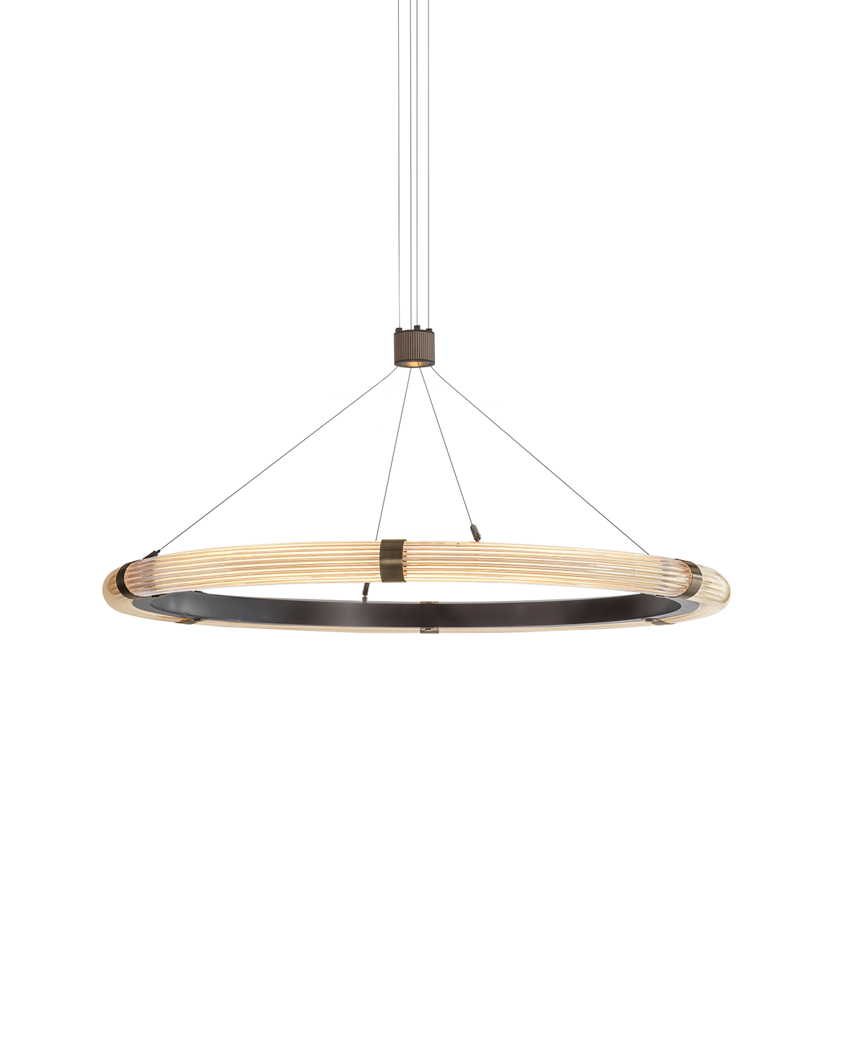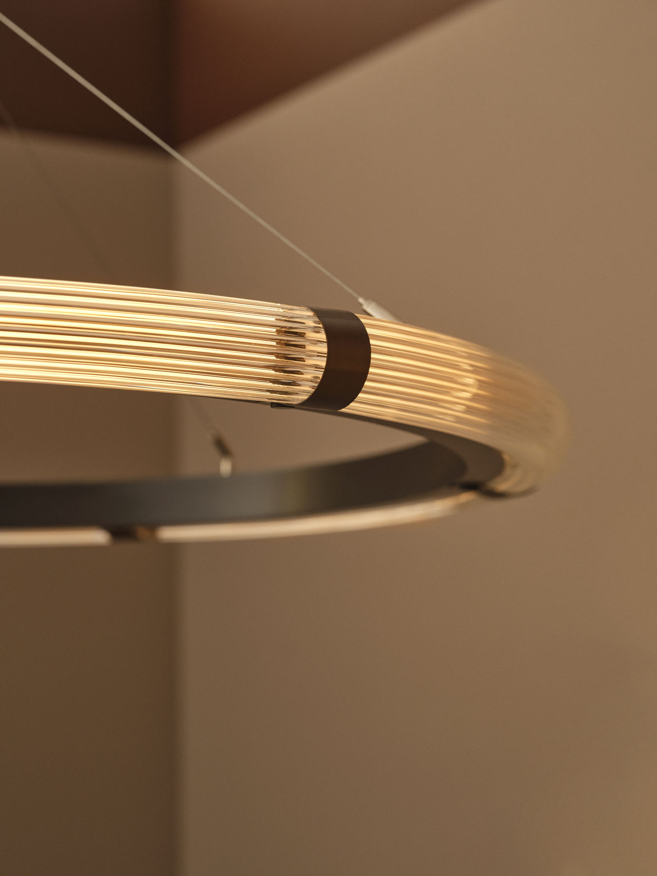 Strata Circular Pendant fra J. Adams & Co er en udvidelse af den eksisterende Strata kollektion. Pendlen kombinerer riflet glas og messing i en cirkulær konstellation. En indbygget spotlight giver ekstra lys nedad, hvilket gør lampen velegnet til høje rum som trappeopgange, foyerer og større stuer. Pendlen fås i to forskellige størrelser samt i en version med to sammensatte ringe.