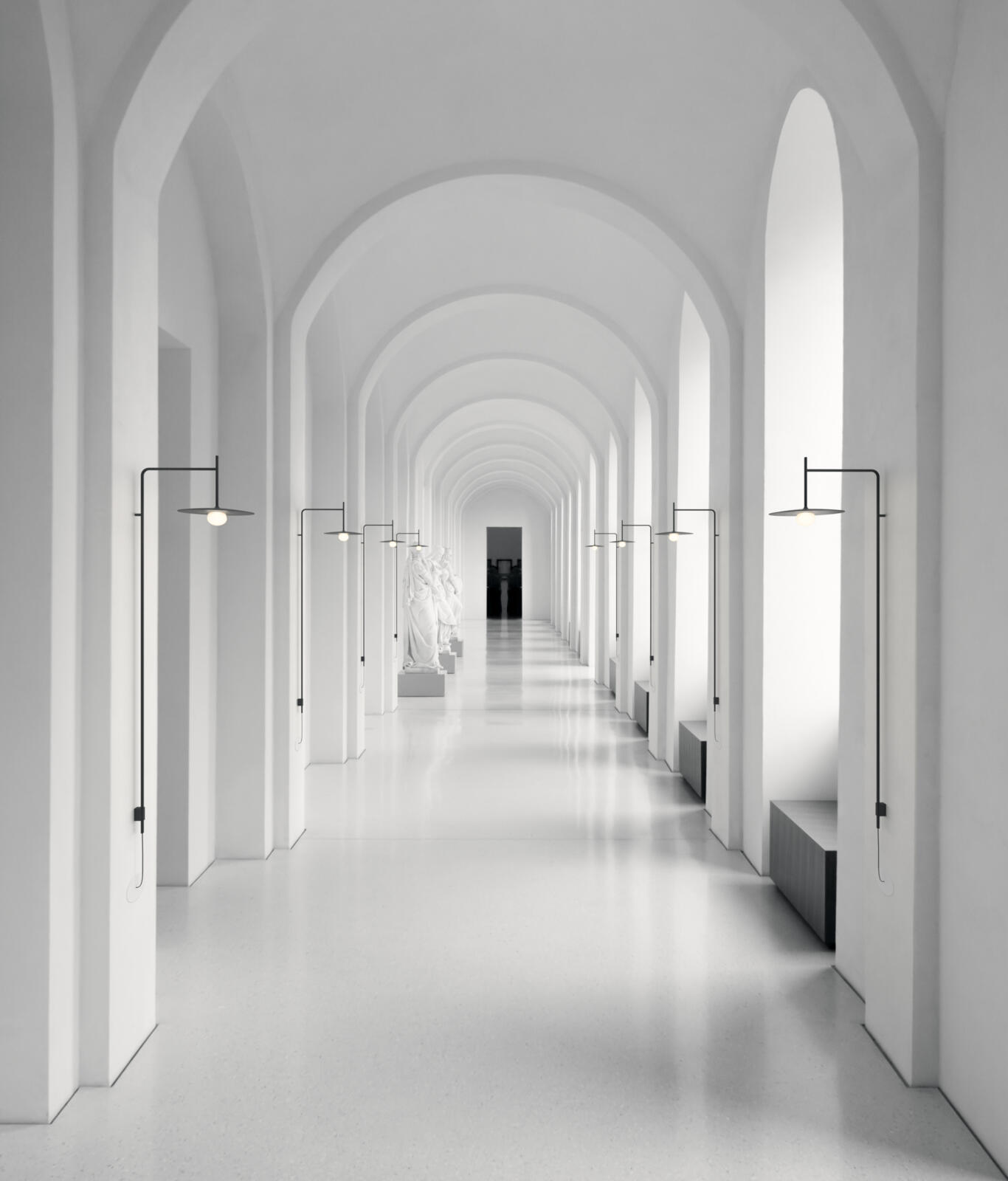 Tempo Wall Short Arm er en slank og minimalistisk væglampe designet af Lievore Altherr for Vibia. Væglampen kommer i tre forskellige mundlæste glas designs – disc, diamond eller oval, som alle leger med lyset i samspillet mellem transparent og matteret glas. Alle tre designs fås i Vibias faste farvepalette. Tempo kommer også i en væg version med lang arm.
