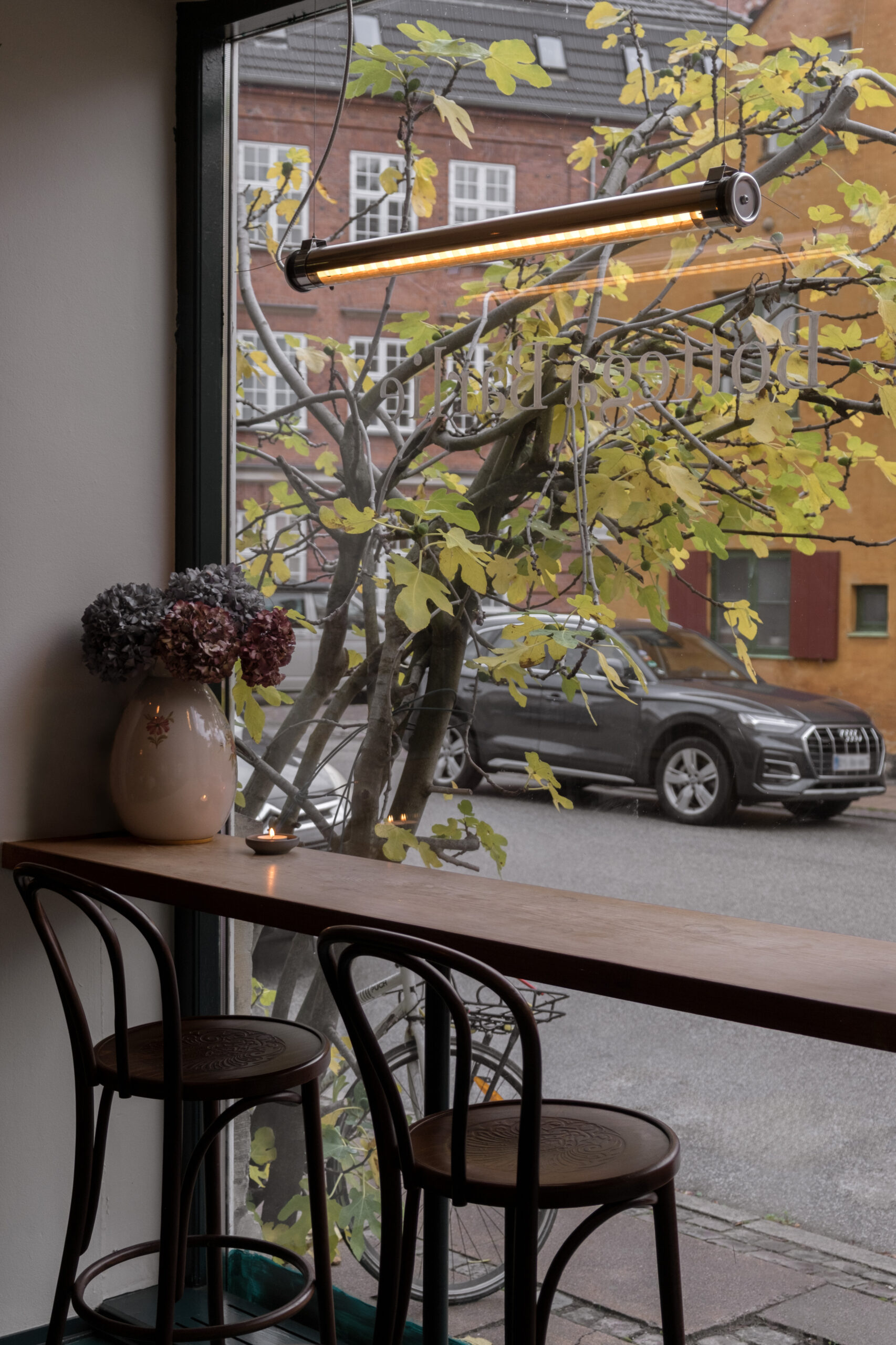 Loftpendlerne blev erstattet af et 3-faset skinnesystem med påmonterede LED spots, som skaber en bedre og mere fleksibel grundbelysning. Over barområdet og i vinduespartierne valgte vi de rå, arkitektoniske Purcell armaturer fra Sammode, som harmonerer med interiøret, skaber stemning i vinduerne og samtidig giver et behageligt og varmt lys, der ikke blænder gennem lamellerne.