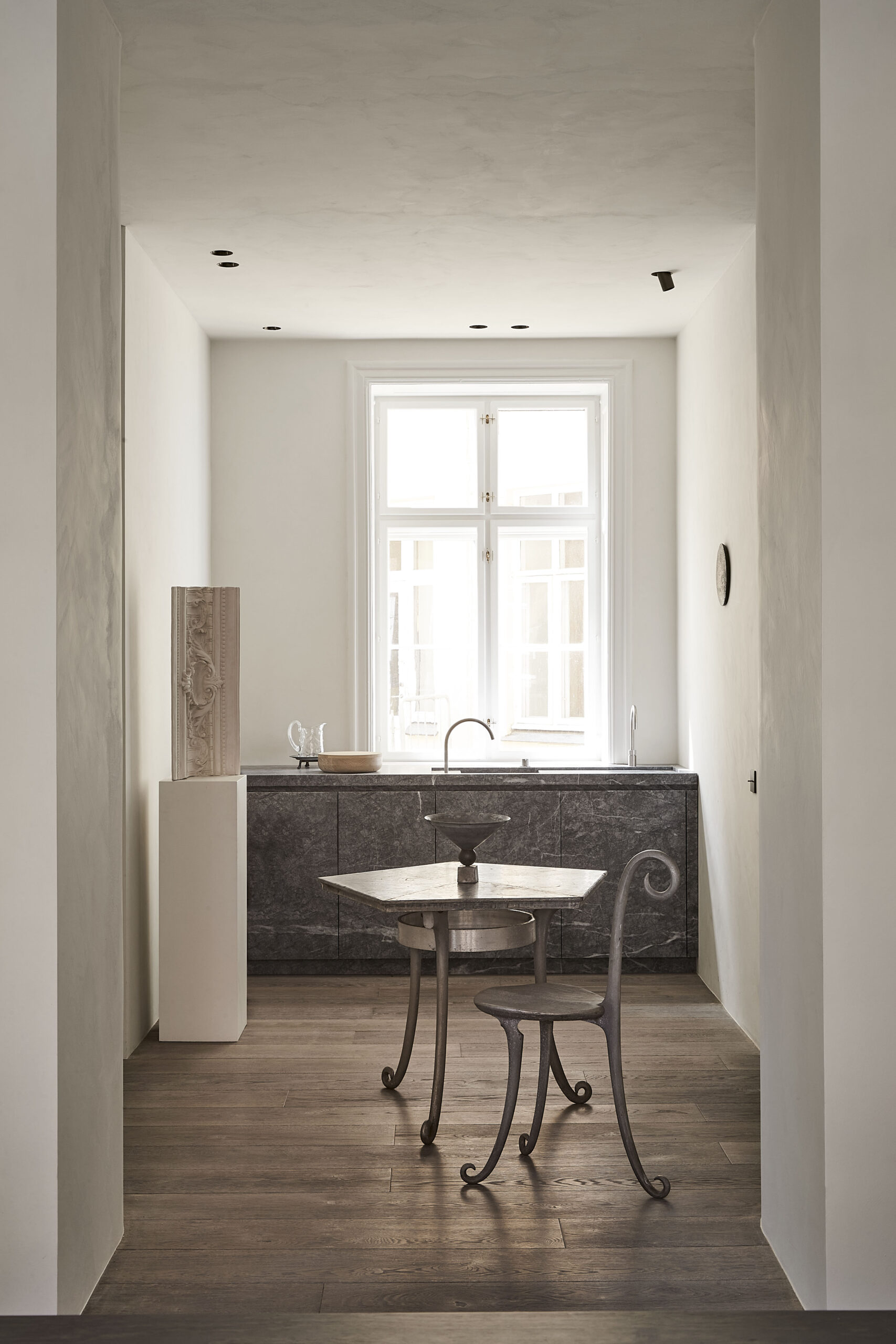 Danielle Siggerud Architects studio bærer tydeligt præg af sansen for detaljer og nøje udvalgte materialer i sten, marmor og træ.