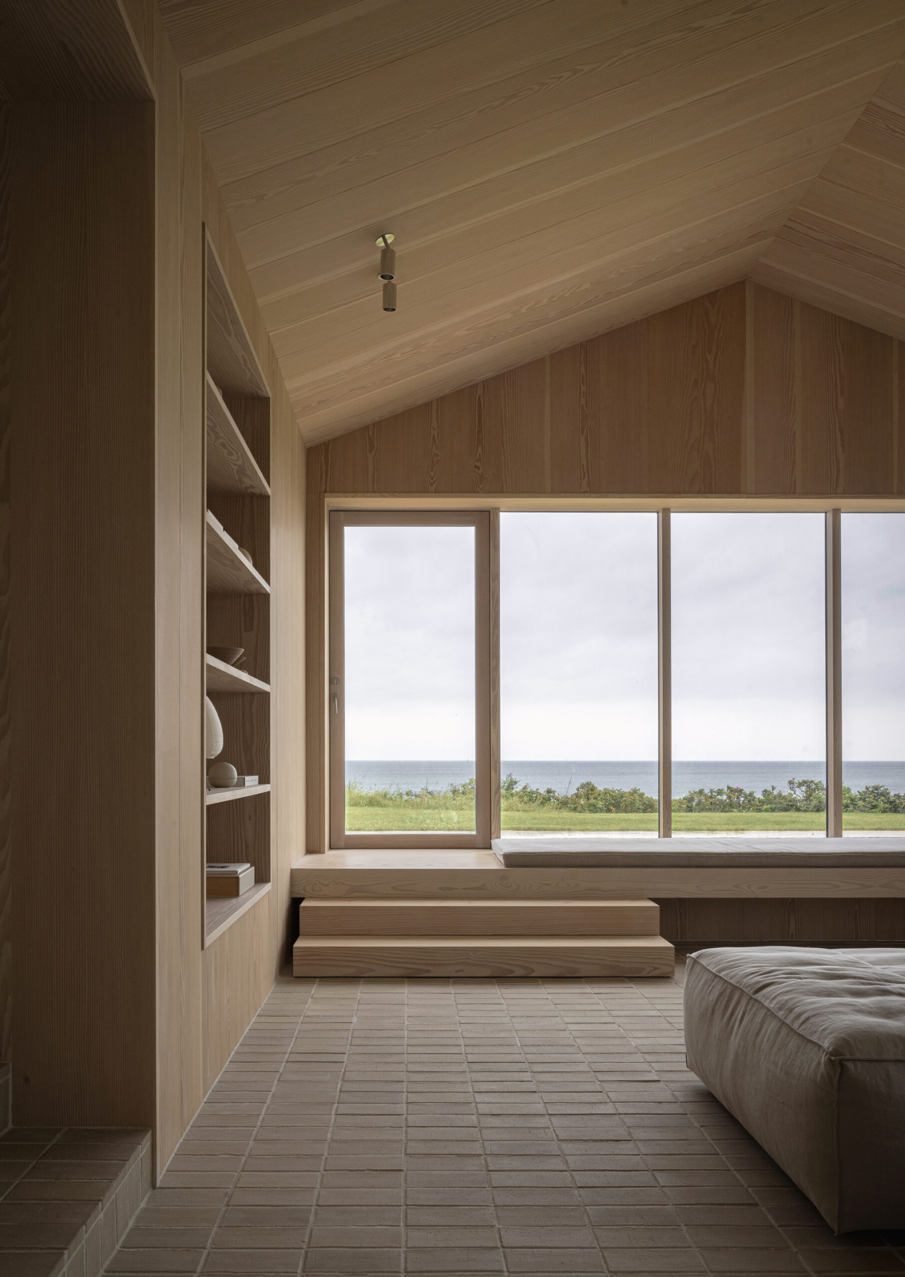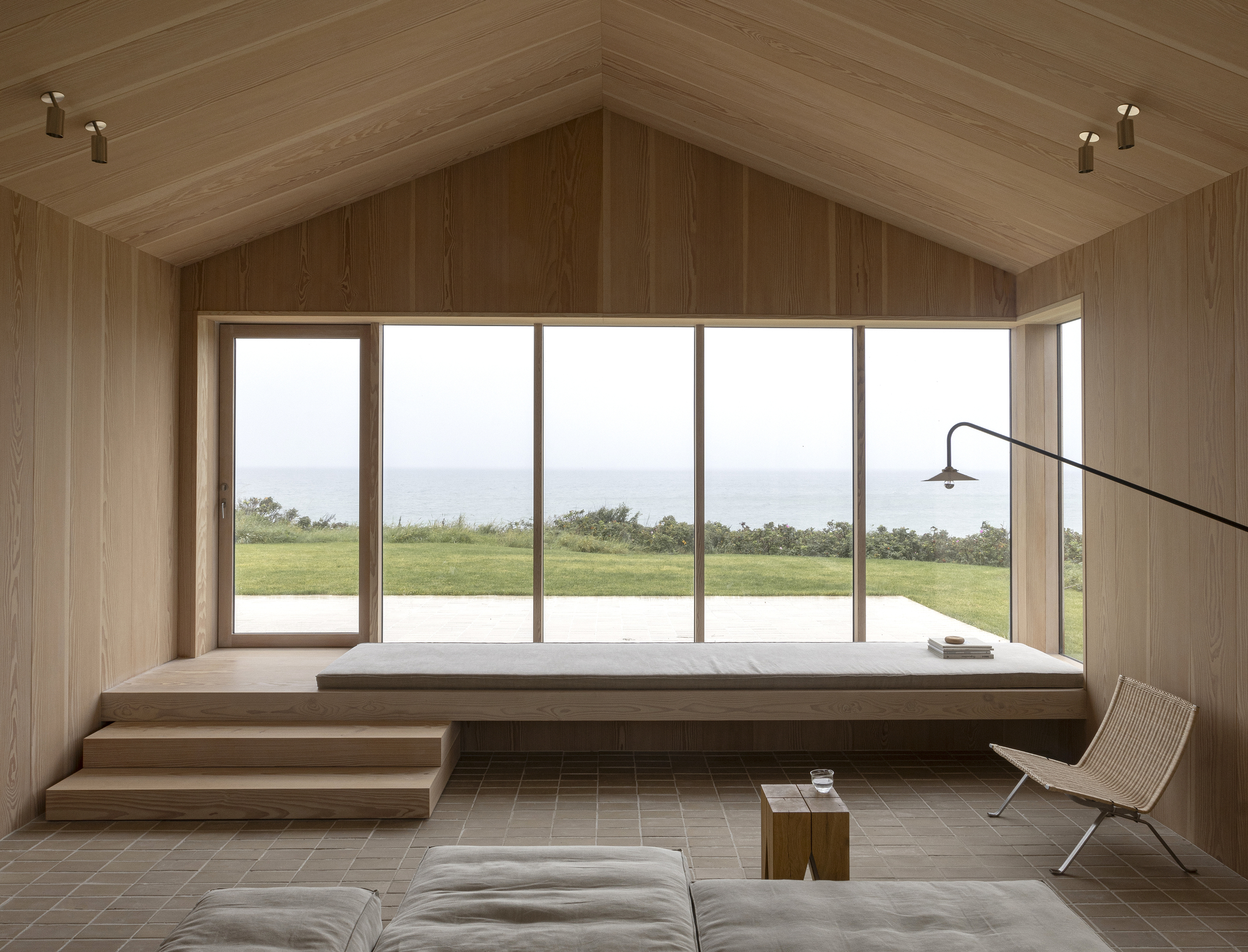 I samarbejde med Norm Architects har vi udarbejdet en belysningsplan med nøje udvalgte produkter fra bl.a. ONE A, Faustlight og PVD Concept, som harmonerer med sommerhusets materialer i træ, sten og sedum.