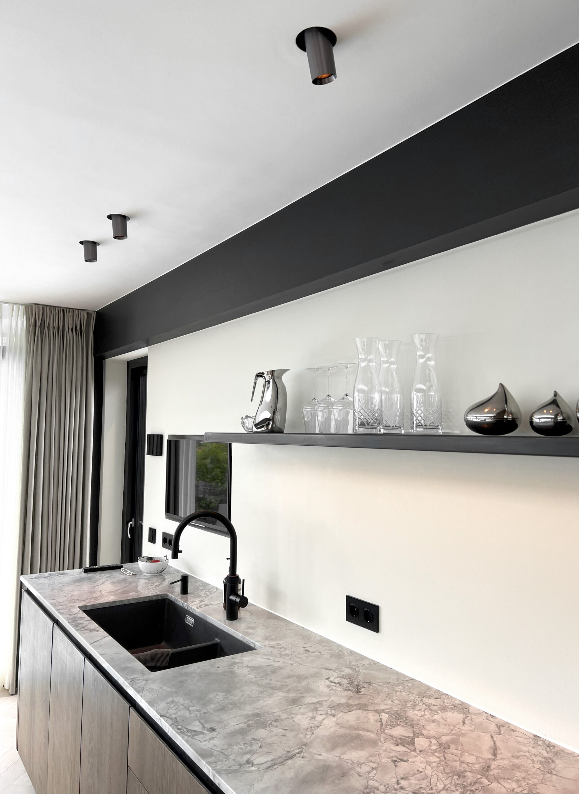 I en nyrenoveret villa tæt på både vand og by har vi udarbejdet den tekniske belysningsplan, der omfatter indbygningsspots og påbygningsspots fra ONE A’s Storm System.