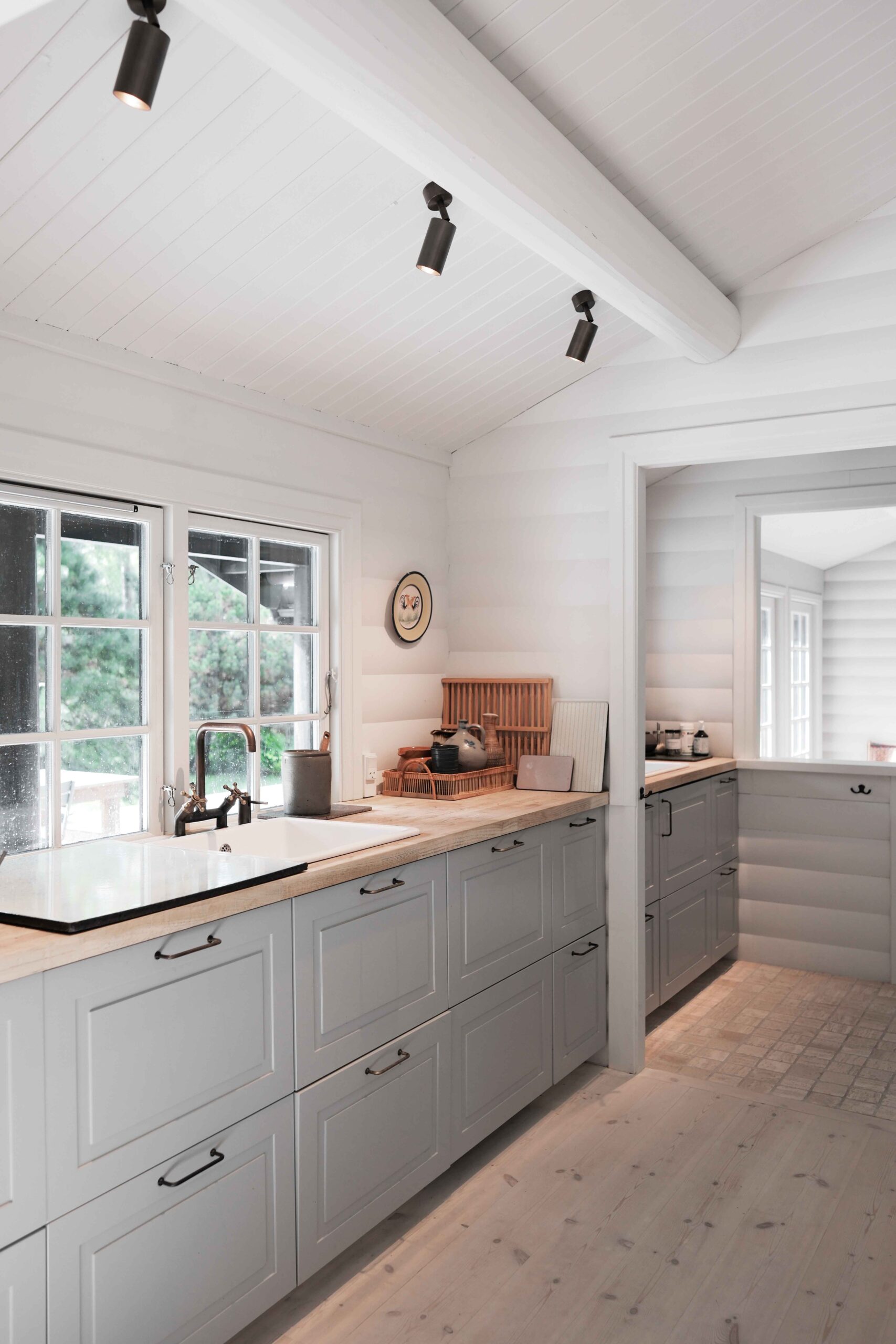 I et charmerende sommerhus med sedumtag og sortmalet træ har vi implementeret en skræddersyet belysningsplan med klassikere fra Faustlight og Lumina. Udendørsområdet er indrettet med møbler og lamper fra Piet Boon, Heatsail og Davey Lighting.