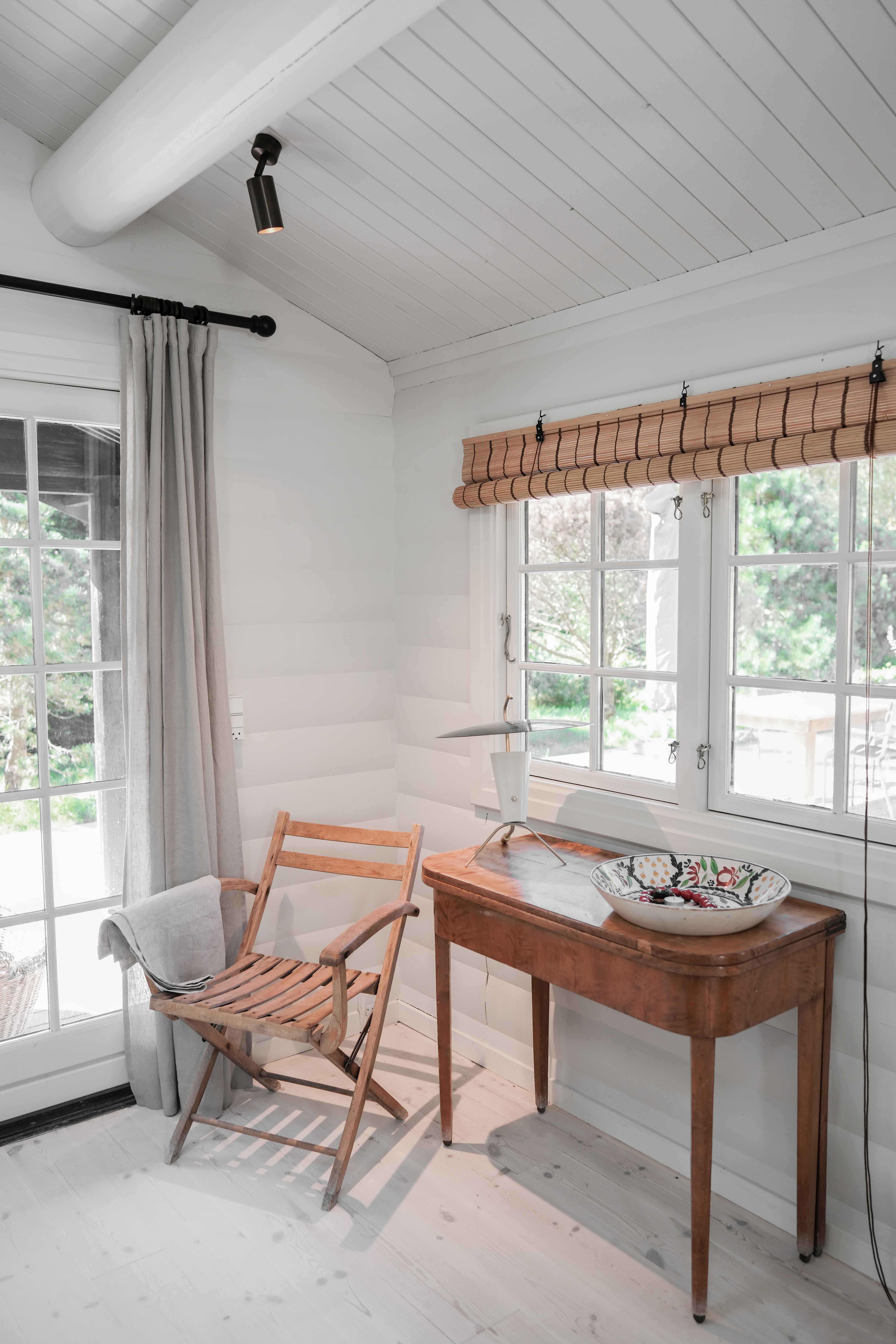 Klassisk sortmalet sommerhus med udsigt til natur