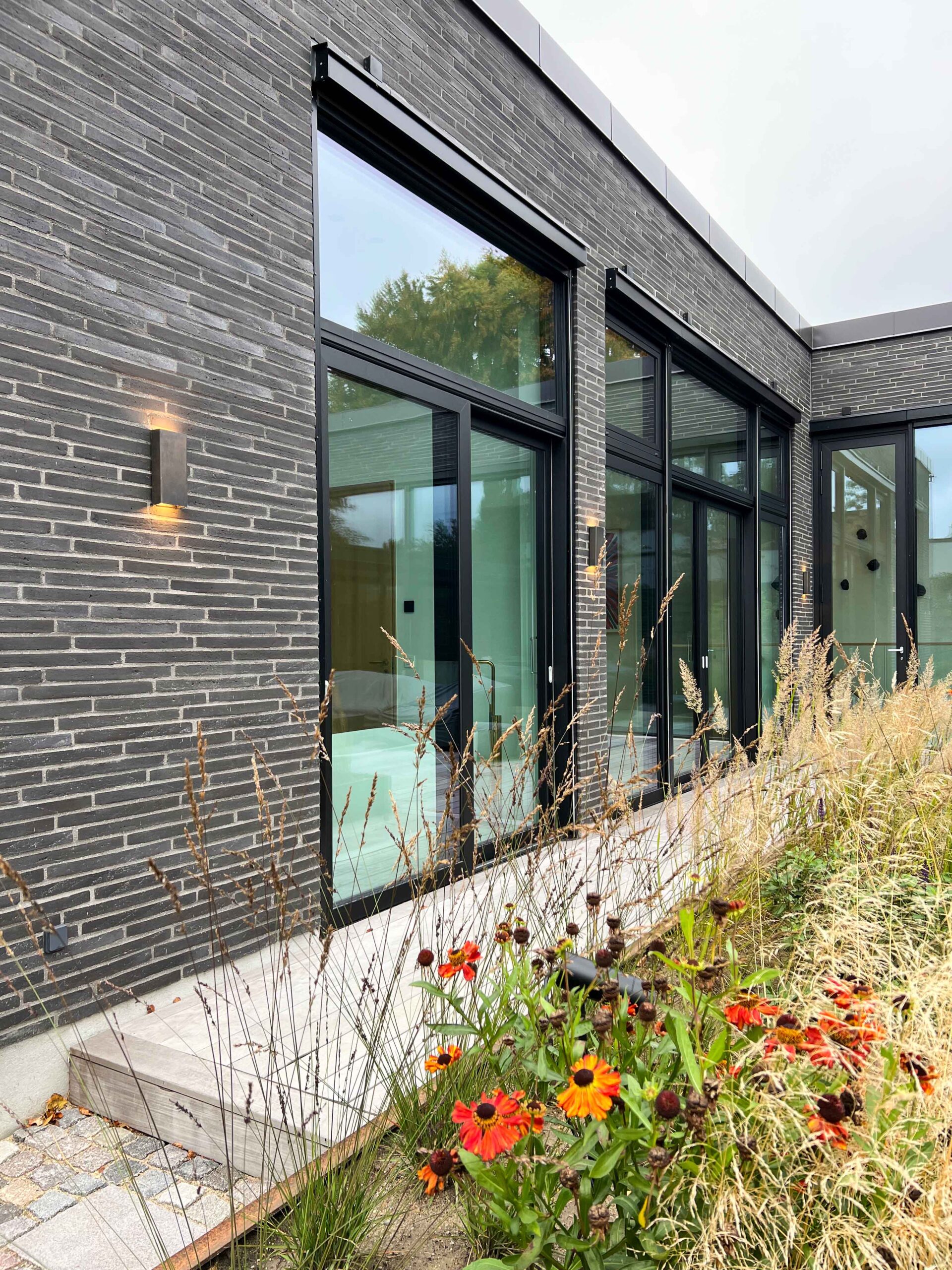 Til udendørsbelysningen har vi blandt andet valgt den slanke og elegante væglampe Simply Pillar fra PVD Concept, som er suppleret med forskellige pullerter og væglamper.